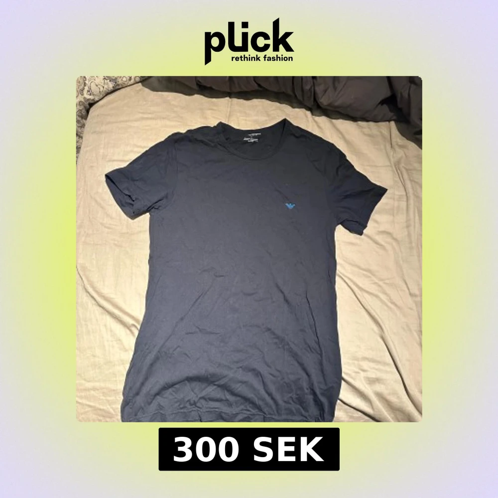 Snygg mörkblå t-shirt från Emporio Armani med diskret logga på bröstet. Tillverkad i 100% bomull för en skön och mjuk känsla. Klassisk passform och rund halsringning, perfekt till jeans eller shorts.
