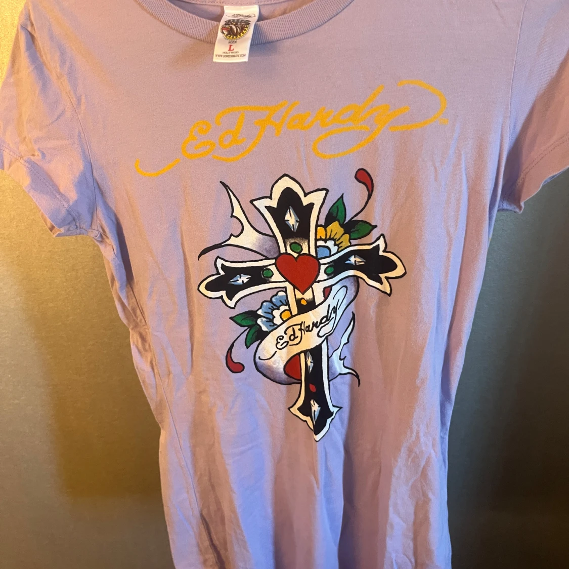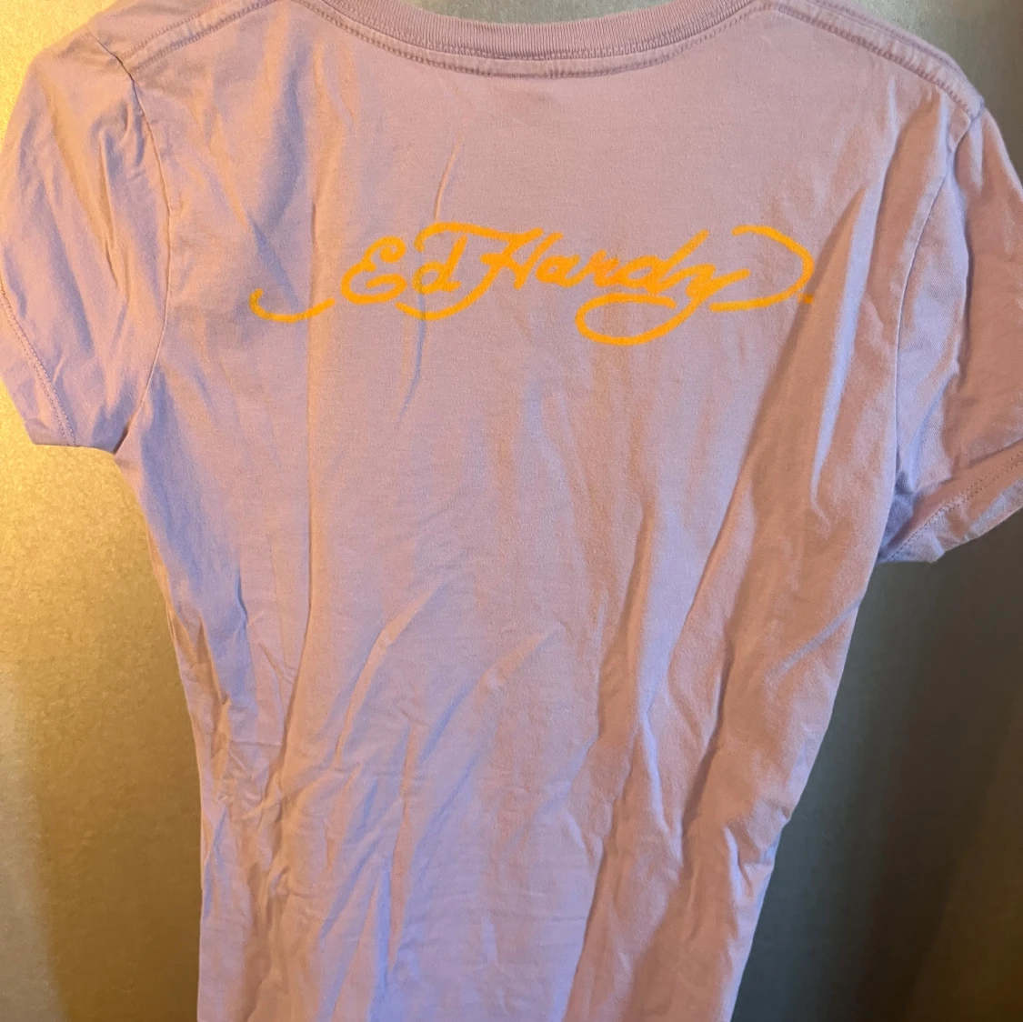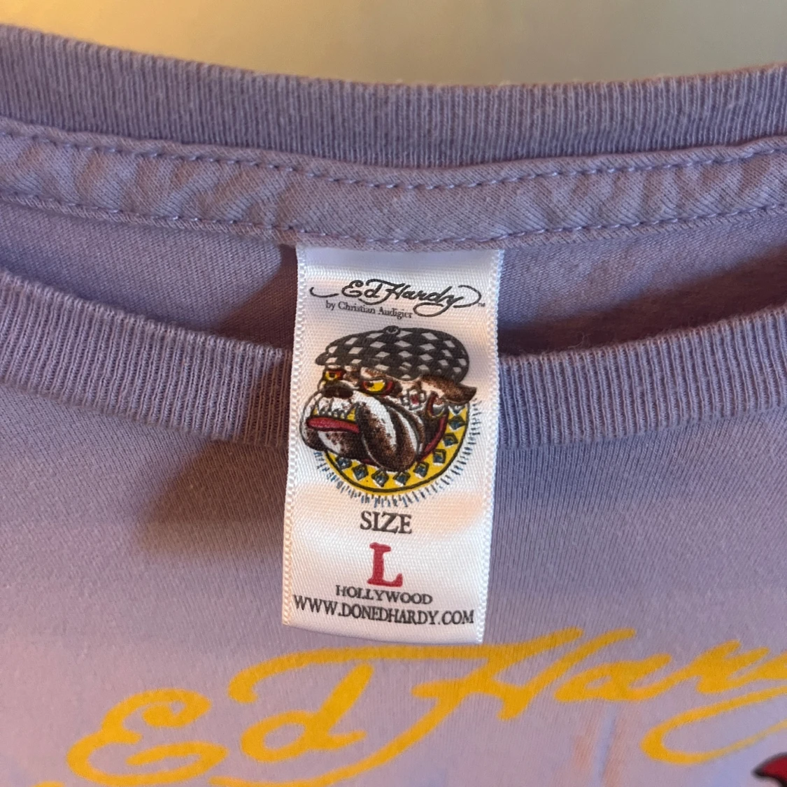 Snygg t-shirt från Ed Hard tryck på framsidan och baksidan. Storlek L men sitter som en S. Knappt använd! Är lite längre så passar perfekt till lågmidjade byxor!