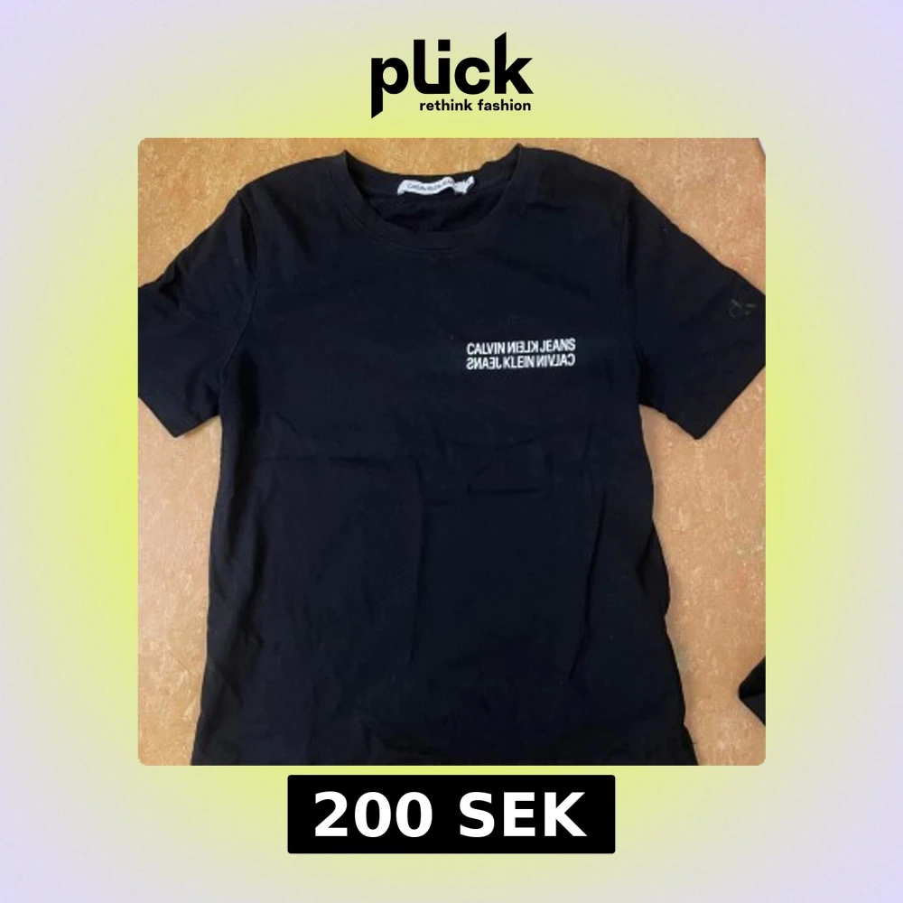 Svart t-shirt från Calvin Klein Jeans med vit och gul logga tryckt på både bröstet och ryggen. Klassisk rund hals och korta ärmar. Använd fåtal gånger.