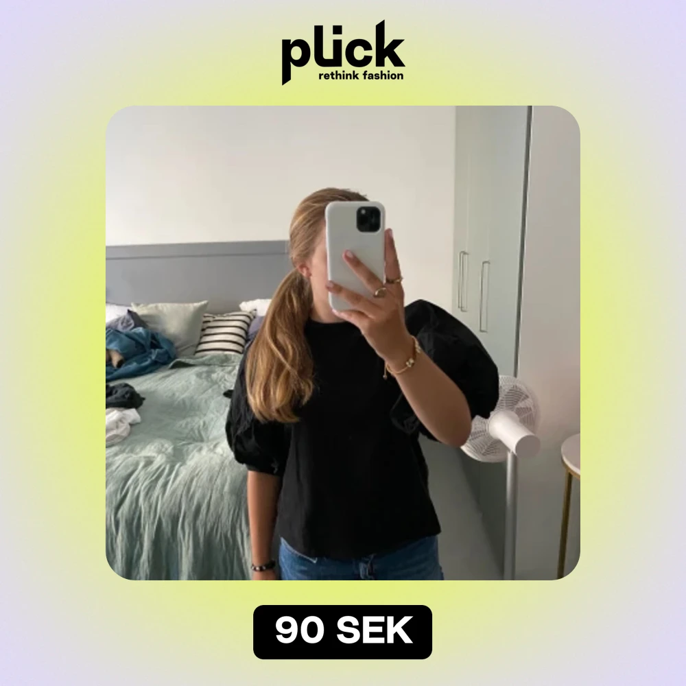 Söt puffärmad svart tröja som tyvärr inte används längre. Skriv för fler bilder/detaljer. Använd gärna köp nu!🥰