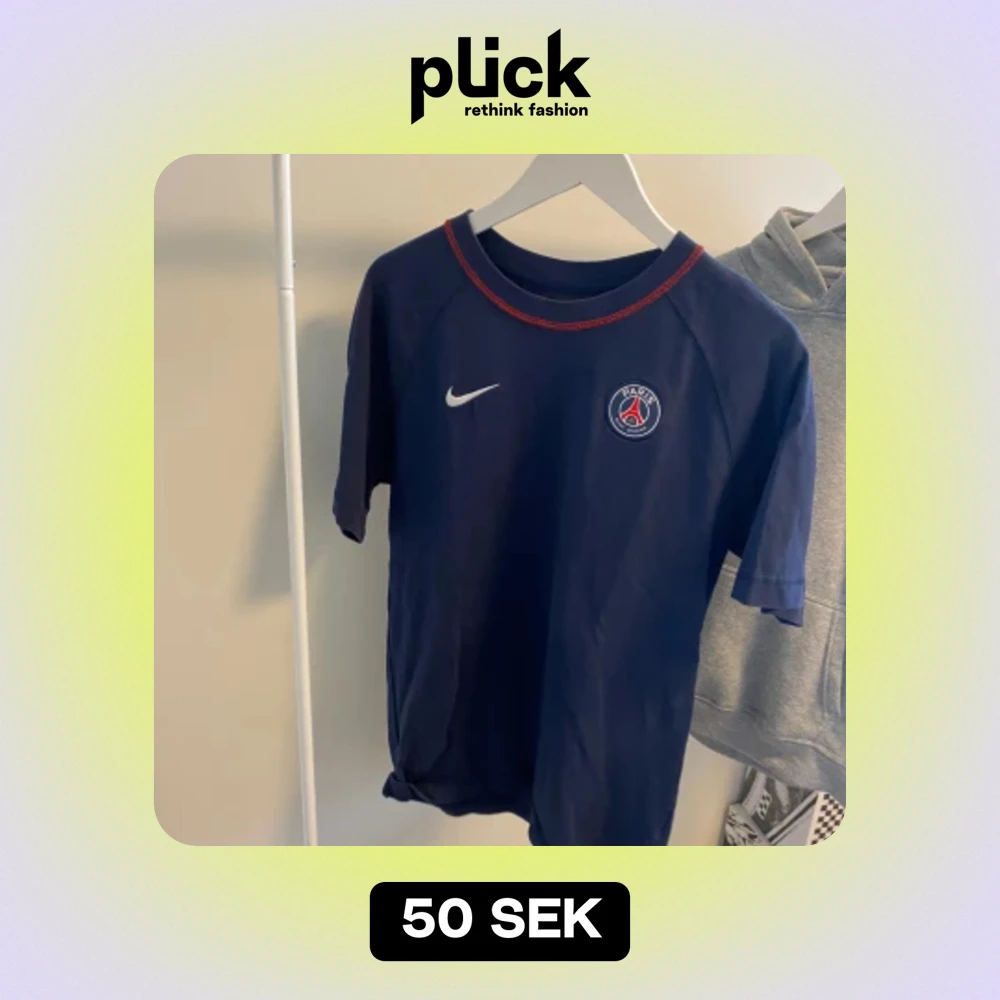 Psg t shirt, den är inte i sport material utan vanligt tyg! Storlek s men är ganska Baggy vilket är najs.