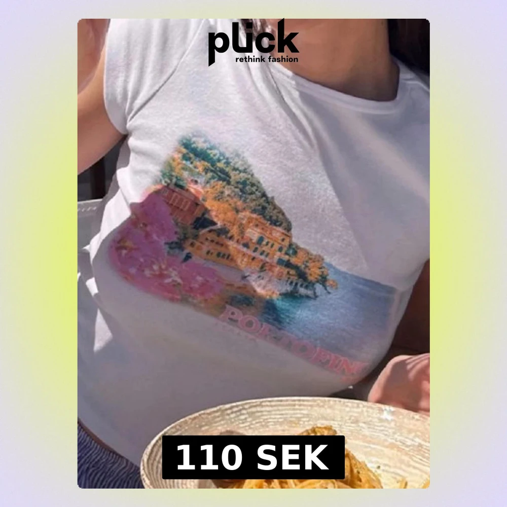 Vit t-shirt från Subdued med färgglatt tryck av Portofino, Italien på bröstet. T-shirten har rund hals och korta ärmar. Materialet är mjuk bomull och passformen är normal. Perfekt för dig som gillar grafiska motiv och somriga vibes.