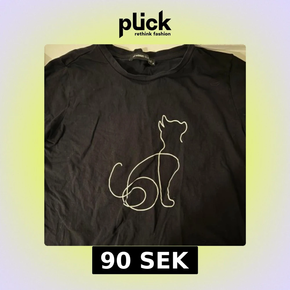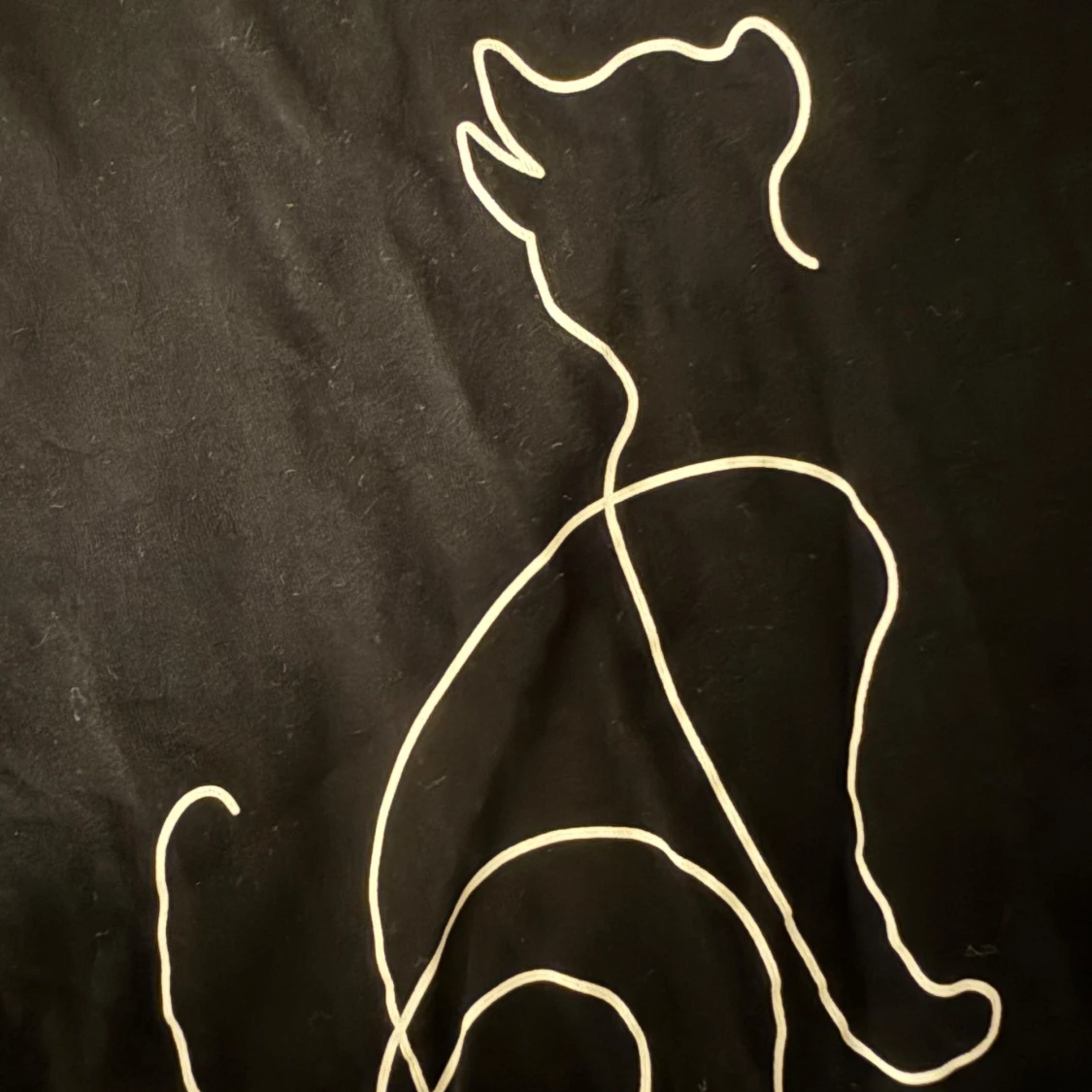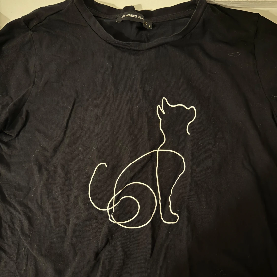Svart t-shirt med ett stilrent vitt kattmotiv på framsidan. Klassisk rund hals och korta ärmar. Materialet är mjuk bomull som känns skönt mot huden. Perfekt för dig som gillar minimalistiska prints och djurmotiv.