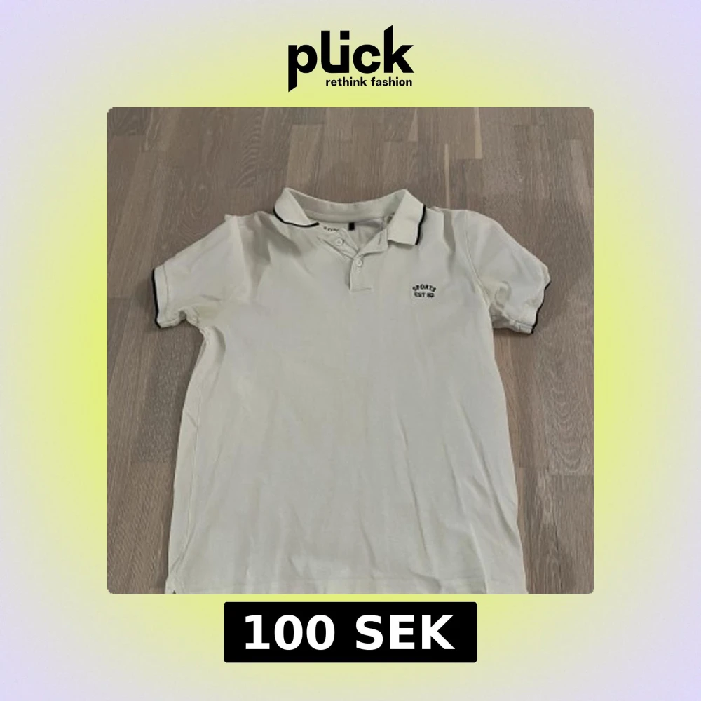 Snygg vit pikétröja med svart kant på krage och ärmslut. Tröjan har en liten broderad text på bröstet. Perfekt för en sportig look eller avslappnad stil.