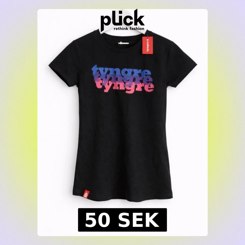 Snygg svart t-shirt från Tyngre med färgglatt tryck i blått, lila och rosa på bröstet. Klassisk rund hals och korta ärmar. Tillverkad i mjuk bomull som känns skön mot huden. Perfekt för dig som gillar streetwear och vill sticka ut lite extra.