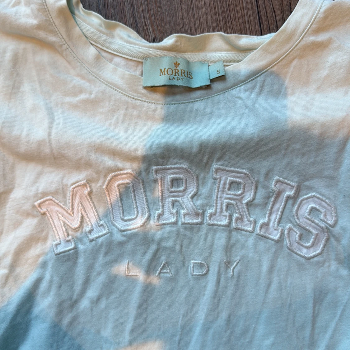 Ljus grön t-shirt från Morris Lady med broderad logga i vitt på bröstet. Klassisk rund hals och korta ärmar. T-shirten är gjord i mjuk bomull och har en clean, enkel stil som funkar till jeans eller shorts. Perfekt för dig som gillar stilrena plagg med diskret branding.