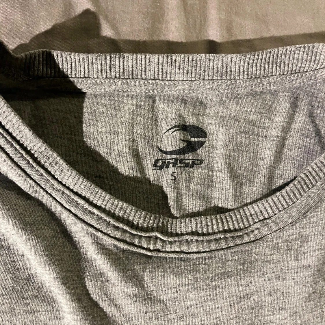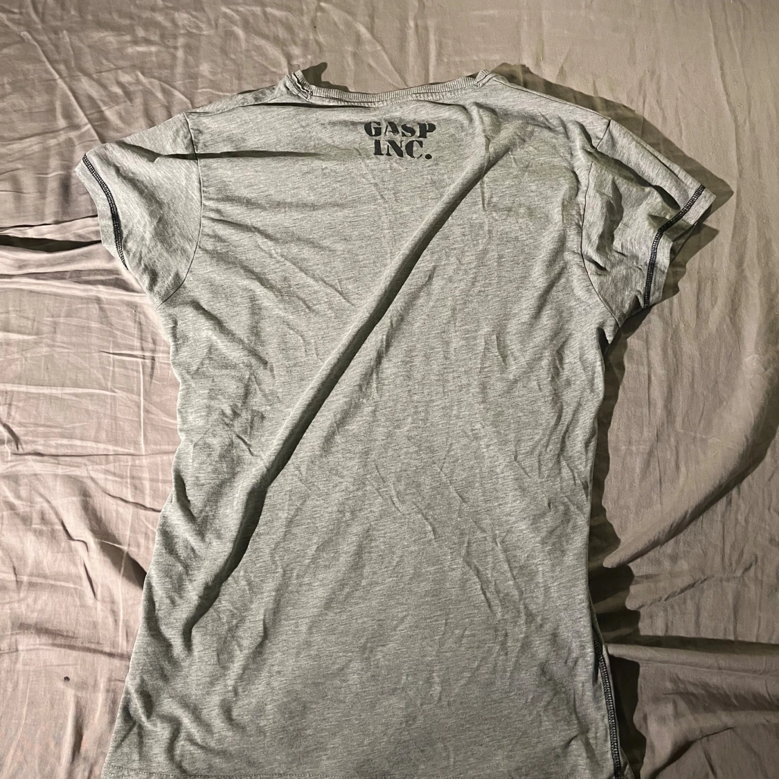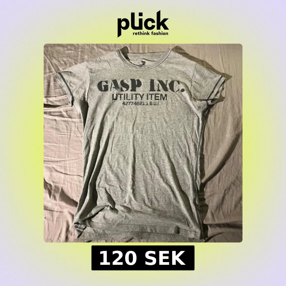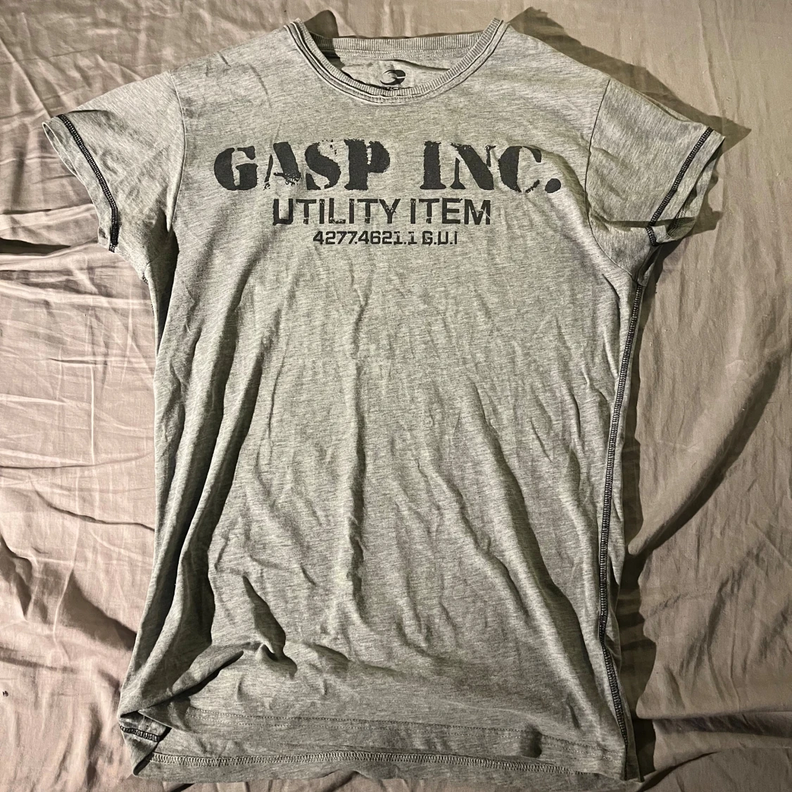 Snygg grå t-shirt från GASP INC. med utility-tryck på bröstet och mindre logga på ryggen. T-shirten har korta ärmar, rund hals och kontrastsömmar vid ärmslut och hals. Perfekt för dig som gillar sportig och urban stil.