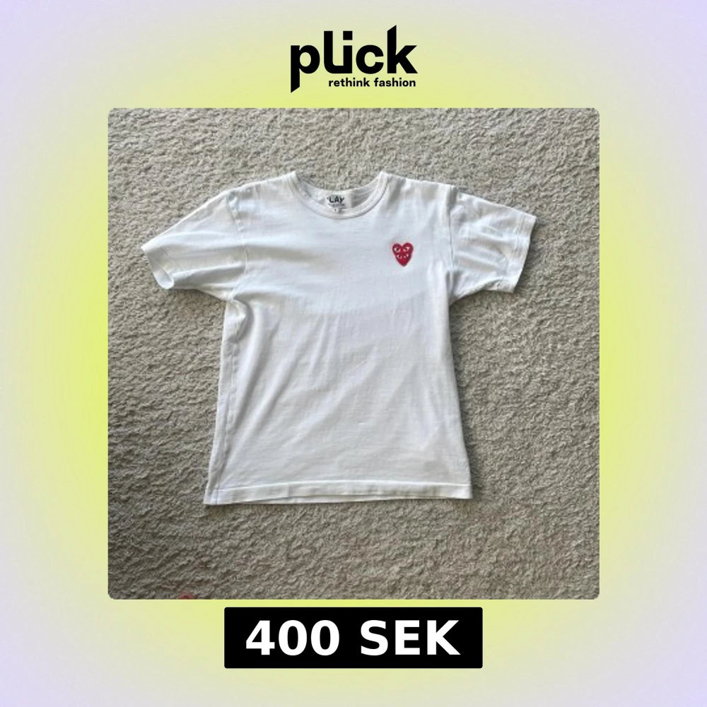 Vit t-shirt från Comme des Garçons Play med det ikoniska röda hjärta-trycket på bröstet. Klassisk passform. Använd fåtal gånger, inga defekter. Används inte längre pågrund av att den är för liten för mig. Äkta.