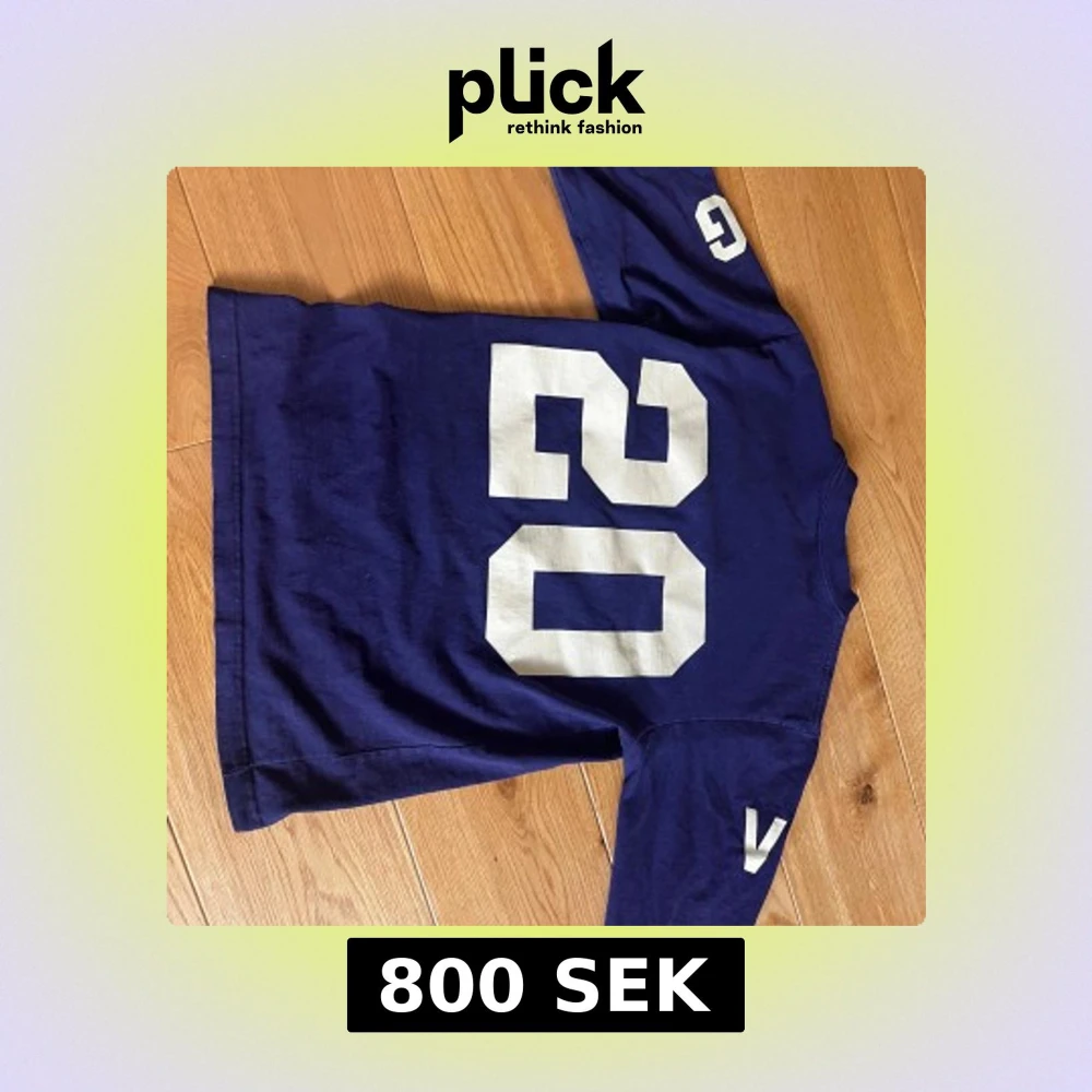 Säljer en blå långärmad t-shirt från Ben-G med stora vita siffror '05' på framsidan och '05' på baksidan. Ärmarna har också vita detaljer. Perfekt för en avslappnad stil.