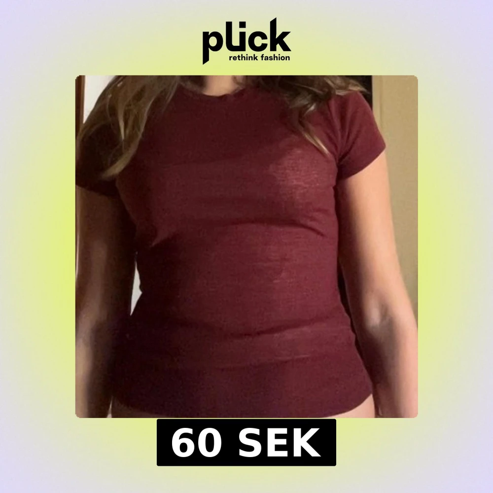 Säljer en enkel och stilren vinröd t-shirt med korta ärmar. Modellen är tight och sitter snyggt mot kroppen. Materialet känns mjukt och skönt, troligtvis bomull. Perfekt för dig som gillar minimalistisk stil och vill ha en basic tee i garderoben.