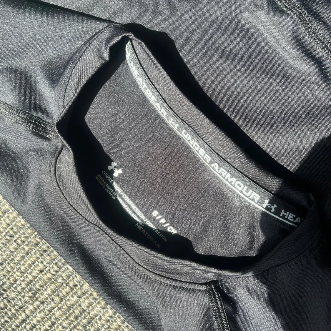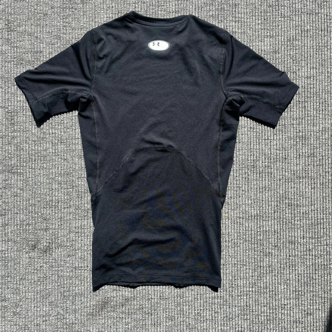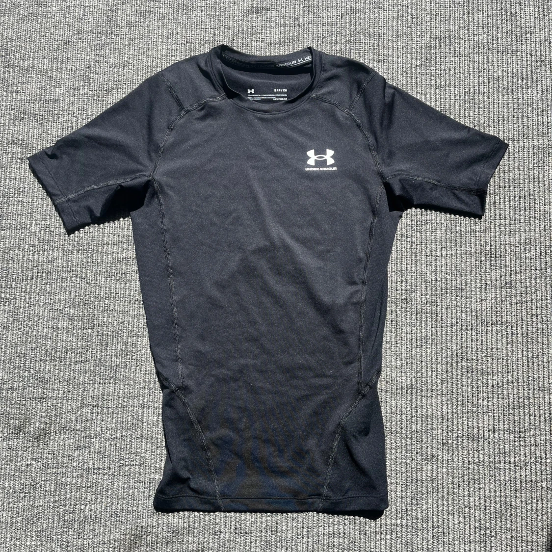Helt ny och aldrig använd svart kompressionst-shirt från Under Armour med korta ärmar och diskret logga på bröstet. Tillverkad i stretchigt syntetmaterial som andas, perfekt för träning. Sitter tight mot kroppen och har sportig look med markerade sömmar. Nypris: 500kr på sportshoppen. Mitt Pris 200kr.
