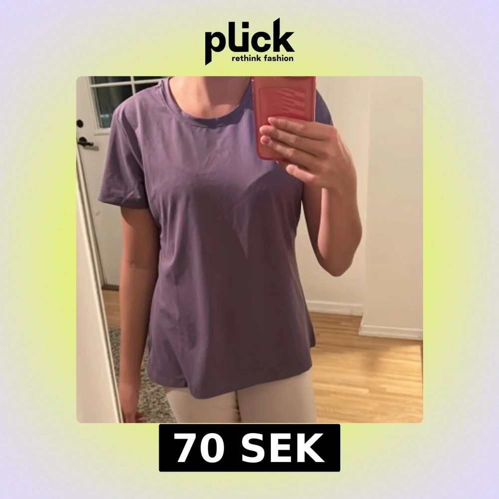 En stilren lila tränings T-shirt med rundad hals. Ganska lös i passformen och passar perfekt för dig som gillar en avslappnad tränings look. Endast använd en gång.