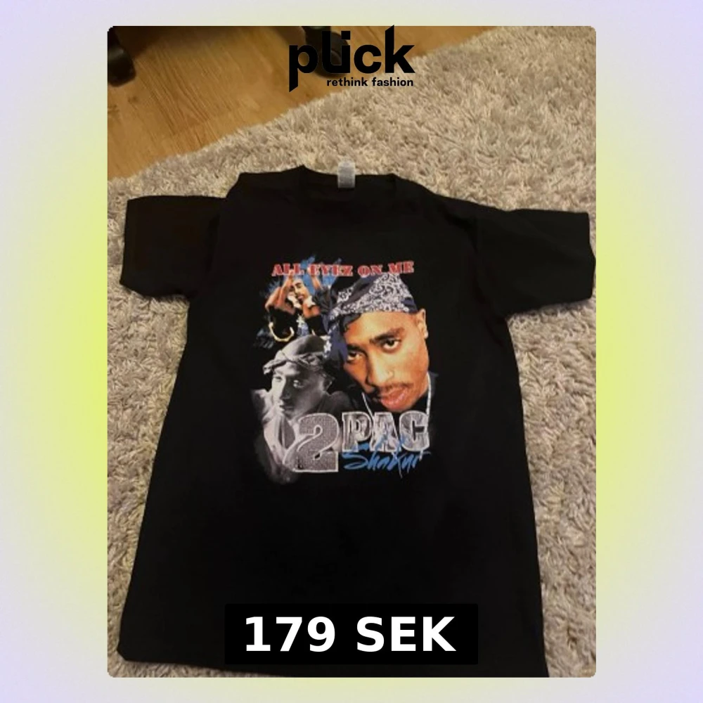 Svart t-shirt med tryck av 2Pac och texten 'All Eyez On Me' på bröstet. Klassisk passform med korta ärmar och rund hals. Materialet är mjuk bomull, perfekt för dig som gillar streetwear och ikoniska motiv.