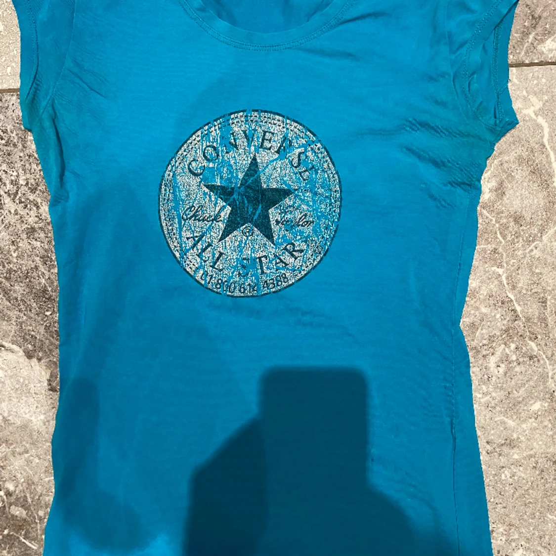 Neon blå stark färgad Converse t-shirt. Säljs i befintligt skick, kan förekomma små fläckar vid armhålan. Väldigt mjuk och bekväm.Säljer pga stor garderobrensning. Kika gärna på mina andra annonser, säljer mycket. Samfraktar gärna:)