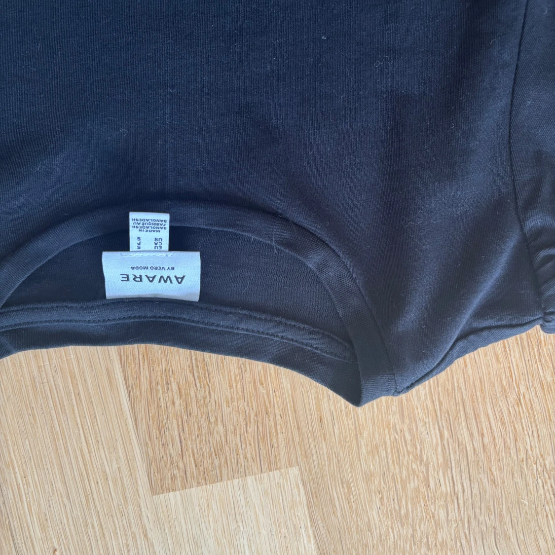Svart t-shirt från AWARE by Vero Moda med rund hals och korta puffärmar. T-shirten är gjord i mjuk bomull och har en clean, enkel look som funkar till allt. Perfekt för dig som gillar stilrena och bekväma plagg.