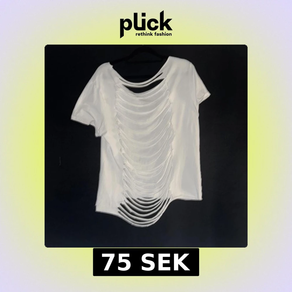 Säljer en vit t-shirt med korta ärmar och unik slitsad design på ryggen. T-shirten har rund halsringning och är tillverkad i mjukt bomullsmaterial. Perfekt för dig som vill sticka ut med en edgy och trendig look. Vill man ha den oversize passar den mer åt S men tajt så är de mer en L🌸