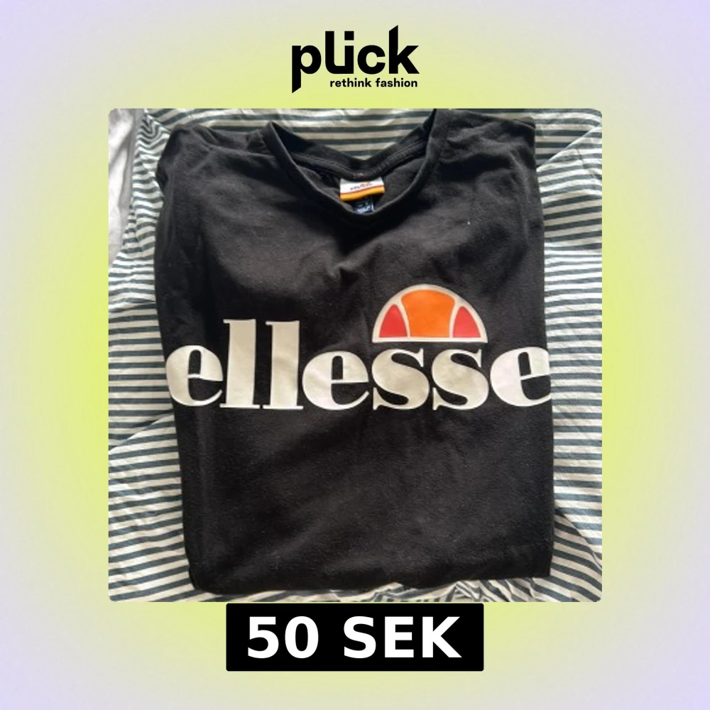 Säljer en svart t-shirt från Ellesse med stor vit logga och orange detalj framtill. Klassisk rund hals och normal passform.