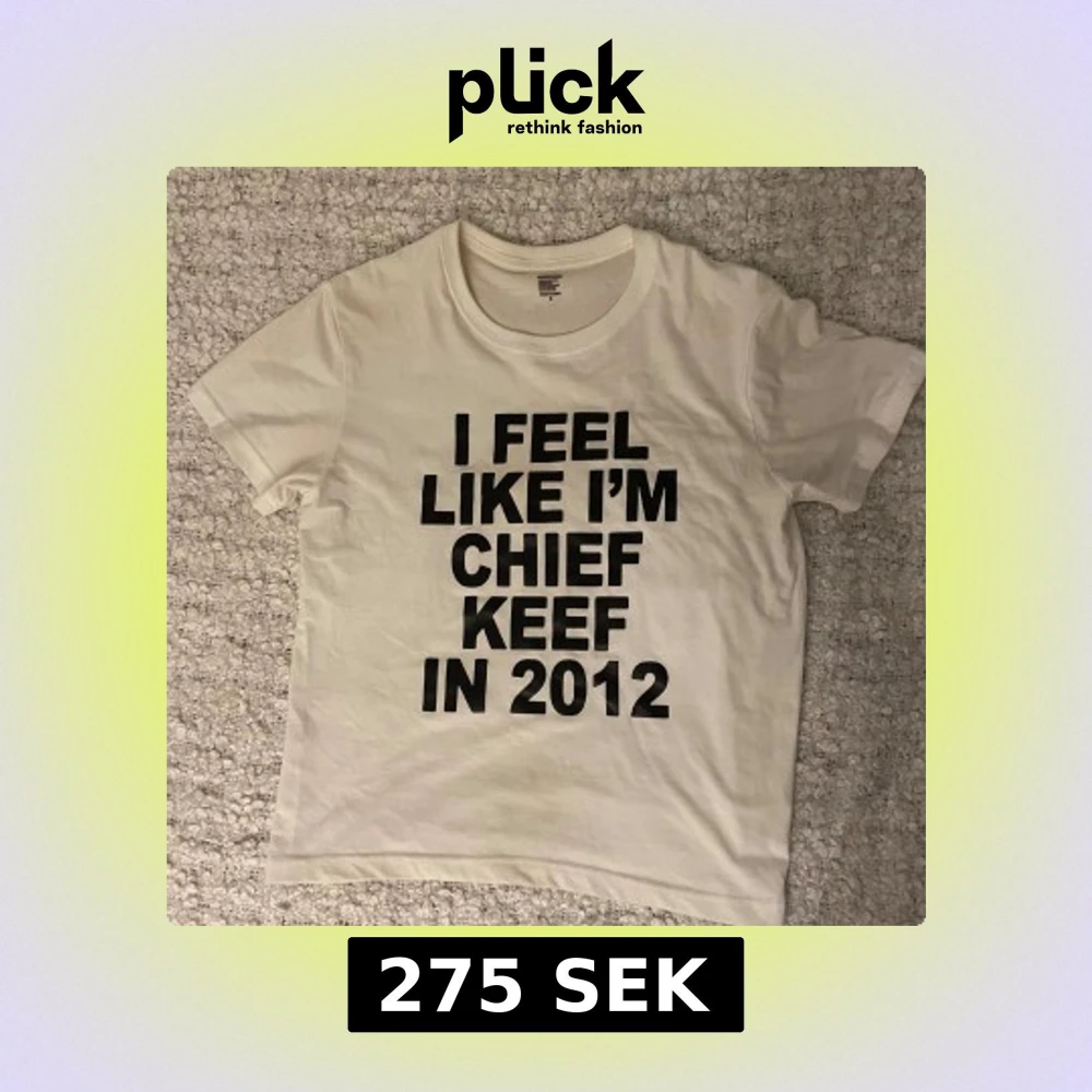 Vit t-shirt i bomull med stort svart texttryck på framsidan: 'I FEEL LIKE I'M CHIEF KEEF IN 2012'. Klassisk passform med rund hals och korta ärmar. Perfekt statement-plagg för dig som gillar hiphop och vill sticka ut.
