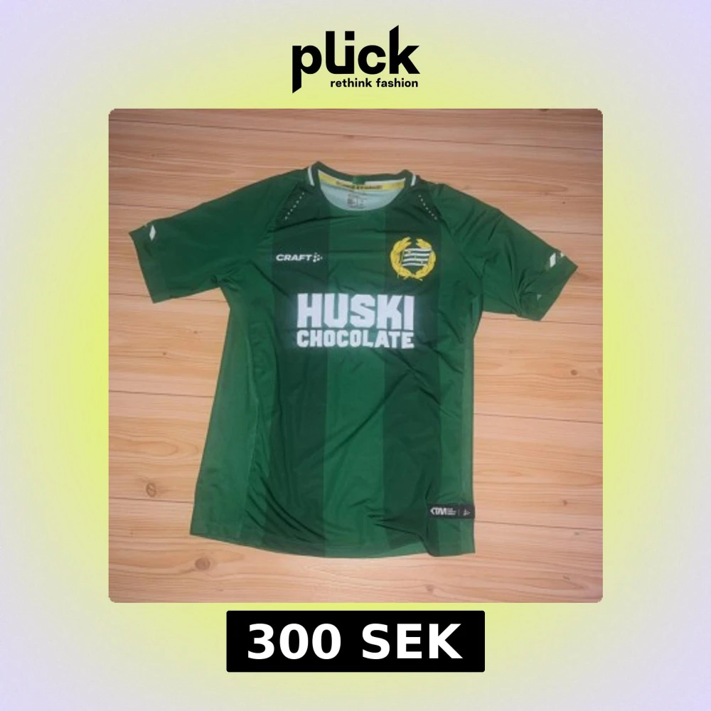 Säljer en grön Hammarby fotbollströja från Craft i storlek S. Tröjan har vita detaljer vid kragen, klubbmärke på bröstet och sponsortryck 'Huski Chocolate' på framsidan. Tillverkad i lätt och ventilerande polyester, perfekt för match eller träning.