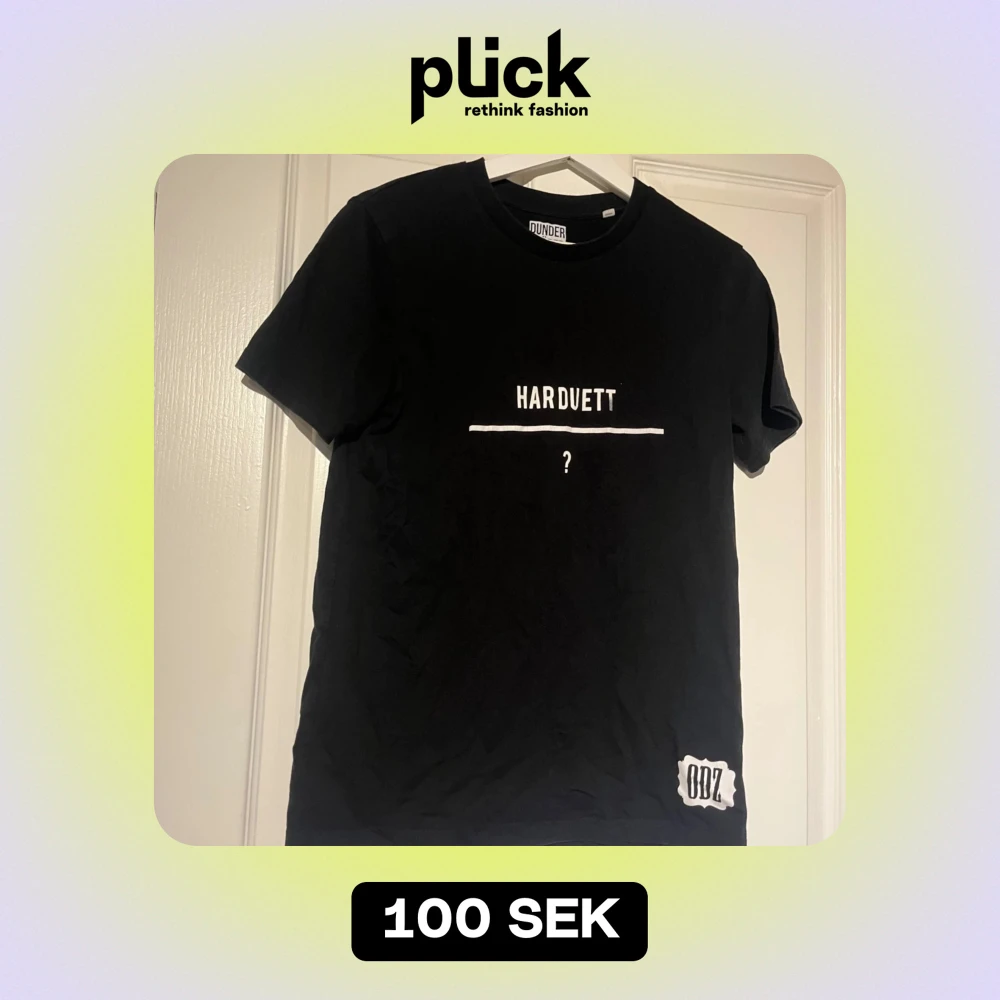 Säljer en svart t-shirt från ODZ med texten 'HARDUETT - ' tryckt på framsidan