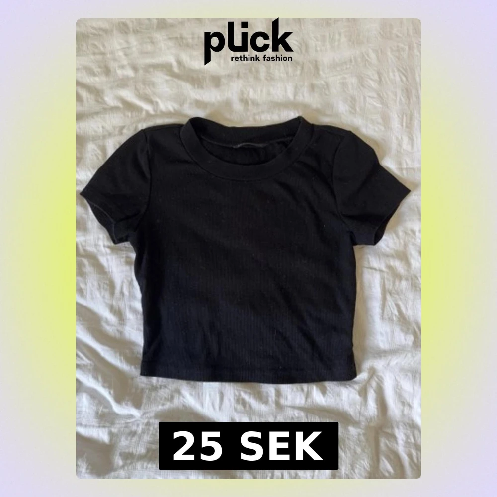 Säljer en svart ribbad crop t-shirt från SHEIN. T-shirten har korta ärmar, rund halsringning och är tillverkad i ett mjukt, stretchigt material som sitter snyggt på kroppen. Perfekt till jeans eller kjol för en enkel och clean look.