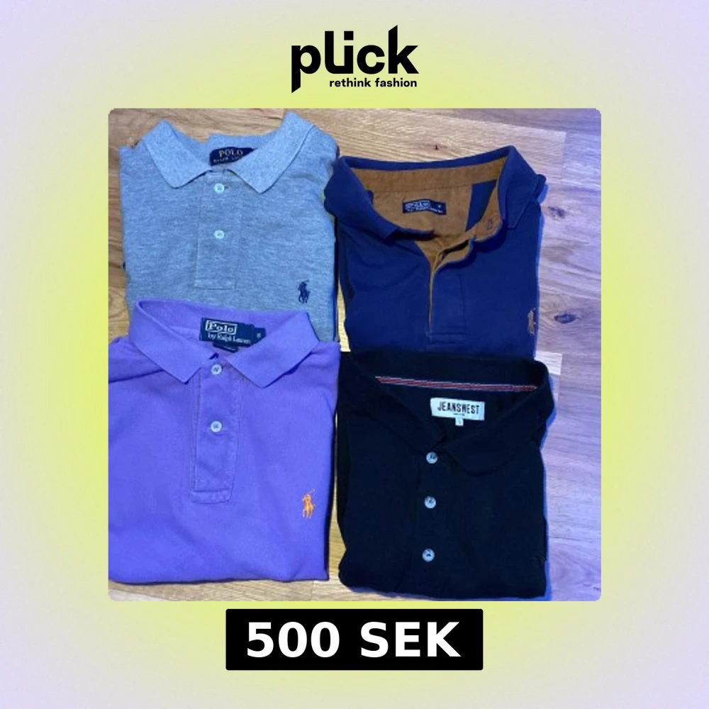 Säljer fyra klassiska pikétröjor: en grå, en marinblå med bruna detaljer, en lila och en svart. Tre från Polo Ralph Lauren med broderad logga och en från Jeanswest.gråa:300kr. Blåa 200kr. Lila 150kr. Svarta 50kr. För allt kan vi göra 500kr