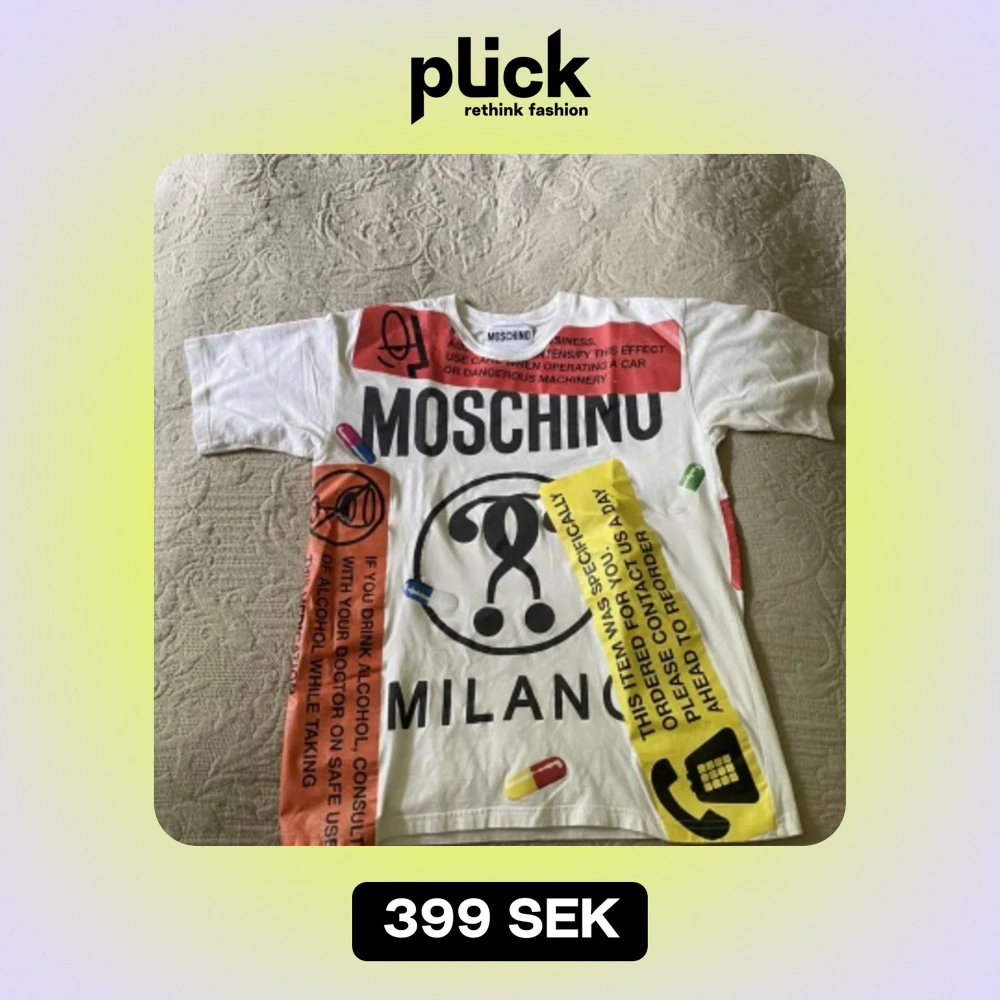 Säljer nu en rikigt fet och unik Moschino t shirt i storleken S. Skick 8/10 använd fåtal gånger. Nypris på denna ligger runt 1800kr. Vårt pris endast 399kr. Tveka it på att höra av dig vid olik frågor eller bilder 🙌