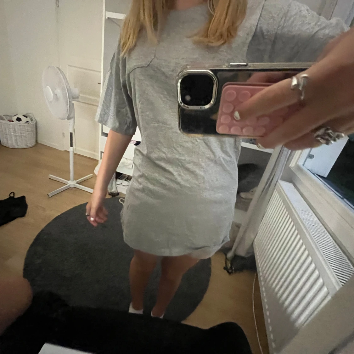 Säljer en oversized grå t-shirt med rund hals och korta ärmar. T-shirten är enkel och stilren, perfekt för en chill look. Materialet känns mjukt och bekvämt, och passformen är loose för extra komfort.