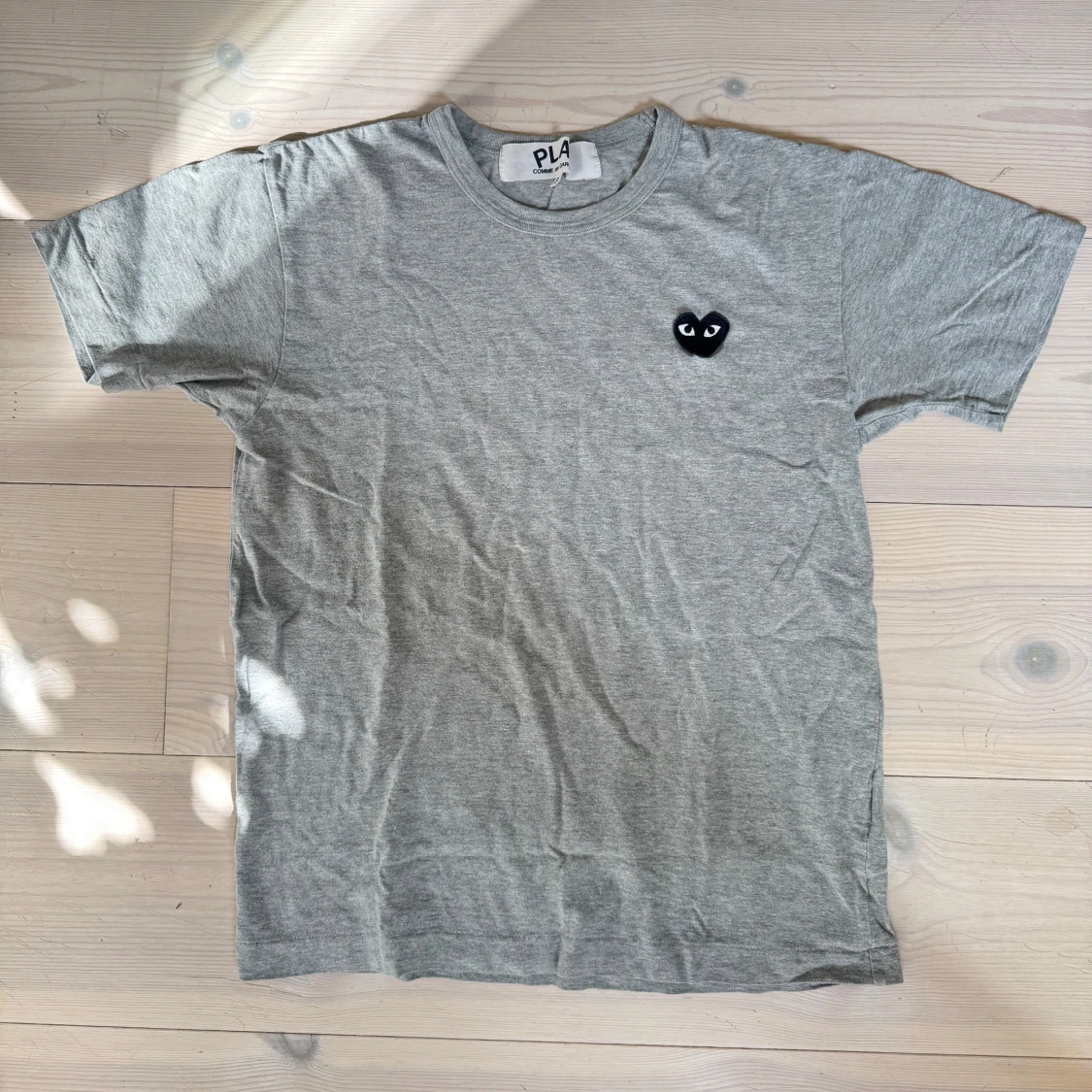 Grå t-shirt från Comme des Garçons Play med dem klassiska hjärt-loggan. Bättre skick än vad det ser ut som på bilden, lite skrynklig pga förvaringen bara!