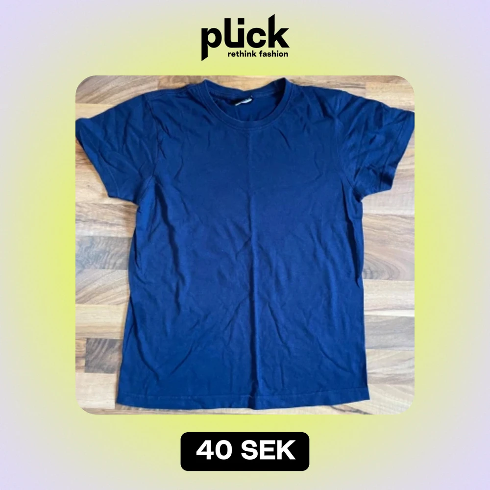 en mörkblå t shirt köpt här på plick, är därför väl använd men fortfarande i gott skick! storlek s men passar även xs. märket clique.