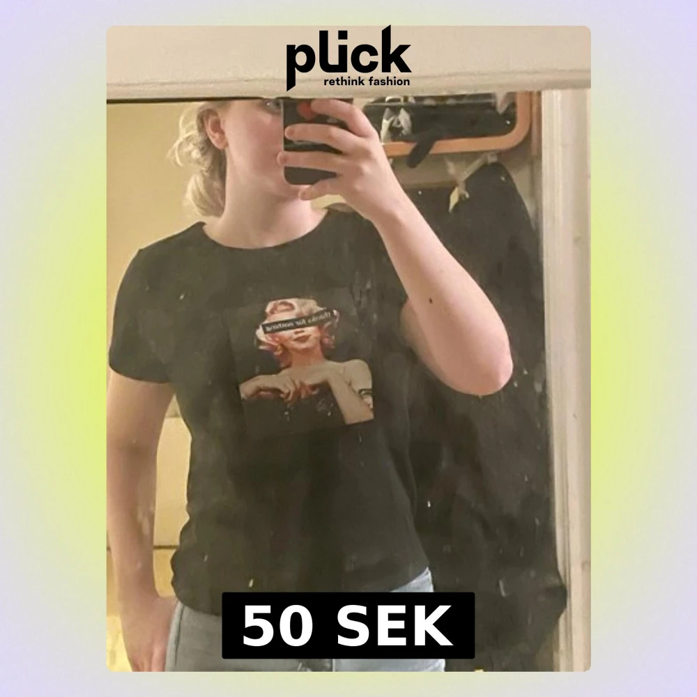 Svart t-shirt med coolt tryck framtill av en retroinspirerad kvinna och text över ögonen. Klassisk rund hals och korta ärmar. Skön passform och tillverkad i mjukt bomullstyg. Perfekt för dig som gillar statement-plagg med attityd.