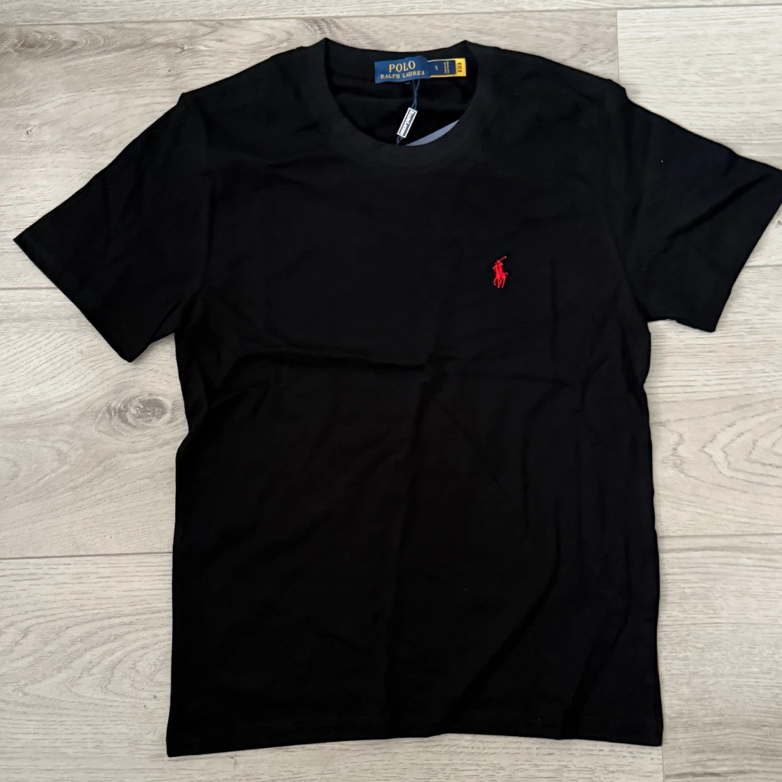 Säljer en snygg svart t-shirt med en röd logga vid vänstra bröstet. Helt oanvänd och erbjuder ett prisvärt erbjudande för denna T-shirt, perfekt till dig som vill ta din klädstil till nästa nivå. Frågor, Dma👍🏼😁