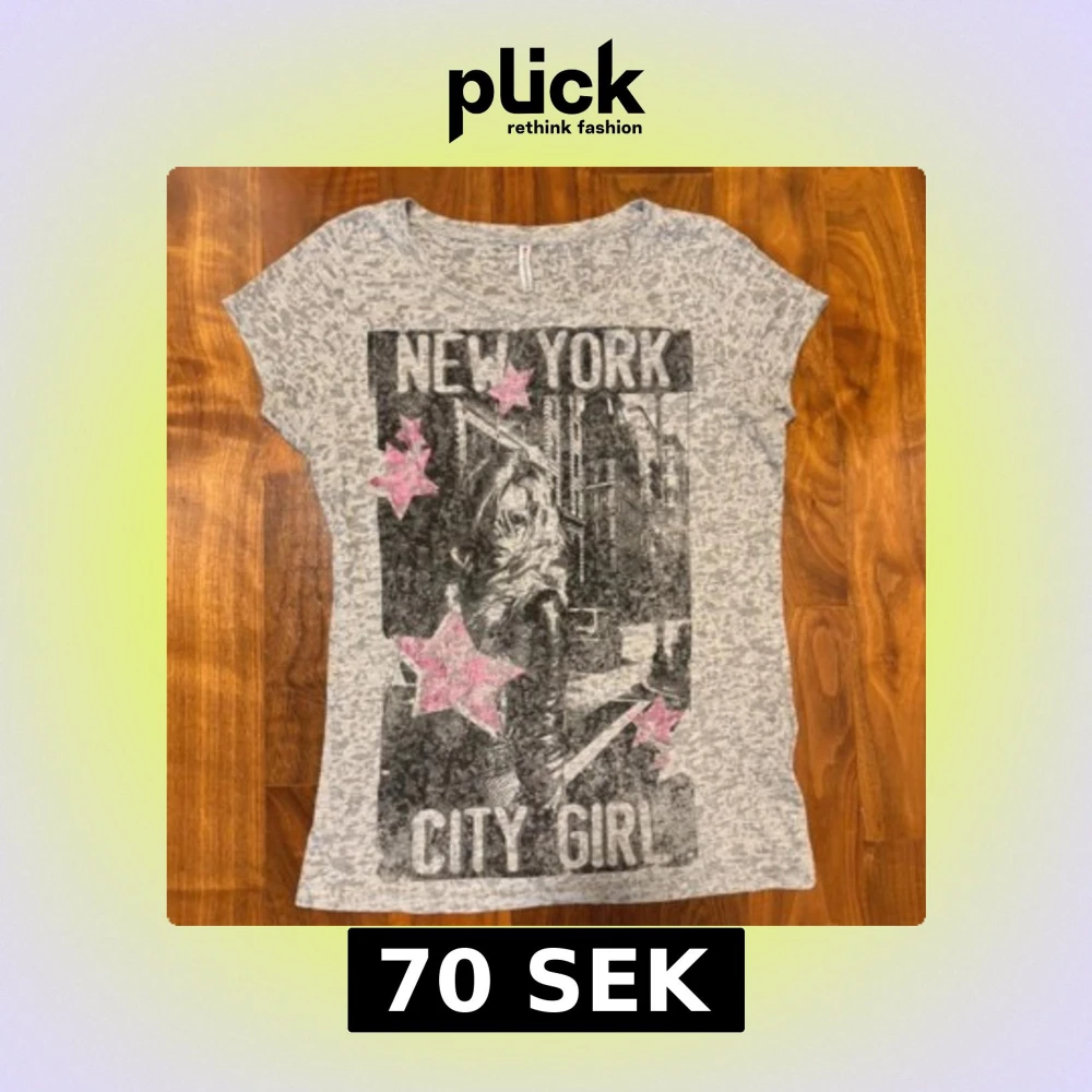 Snygg grå t-shirt med ett coolt New York City Girl-tryck i svart och rosa stjärnor. Inga defekter