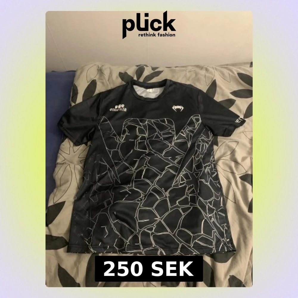 Cool svart tröja från m Omerta-tryck och unikt vitt grafiskt mönster som liknar spruckna linjer över hela tröjan. Kortärmad modell i lätt och ventilerande polyester, perfekt för träning eller match. Snyggt tryck både fram och bak.