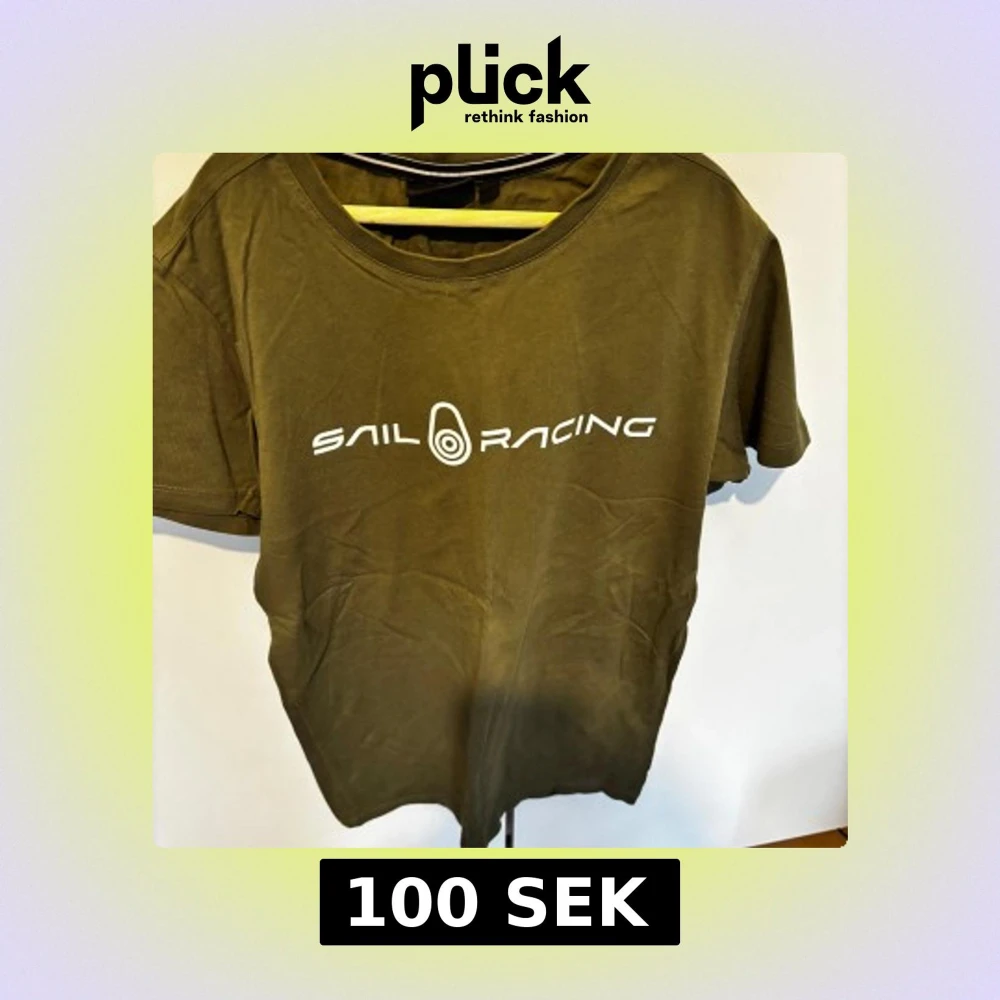 Olivgrön t-shirt från Sail Racing med vit logotyptryck på bröstet. Klassisk rund halsringning och korta ärmar. Perfekt för en avslappnad och sportig stil.