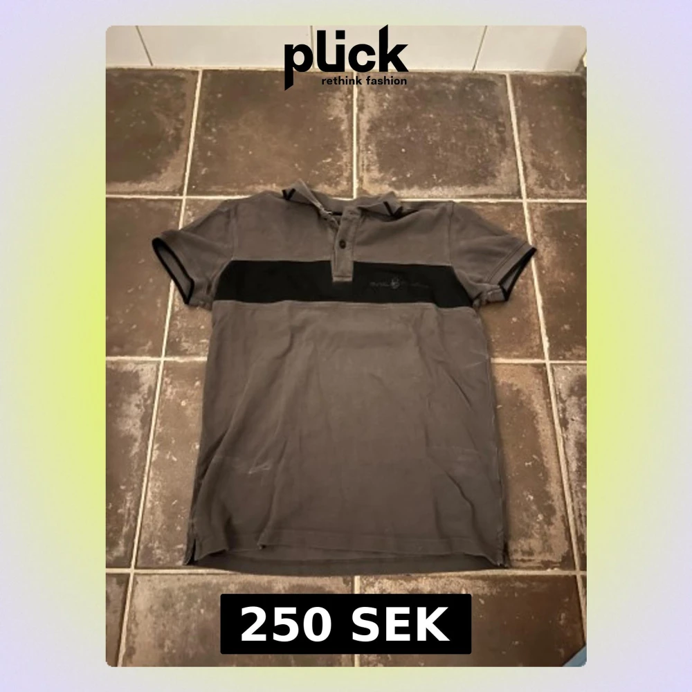 Säljer en grå t-shirt från sail racing med svart horisontellt band över bröstet och diskret logga. T-shirten har korta ärmar, krage med två knappar och är gjord i mjuk bomull. Perfekt för dig som gillar stilren och sportig design.