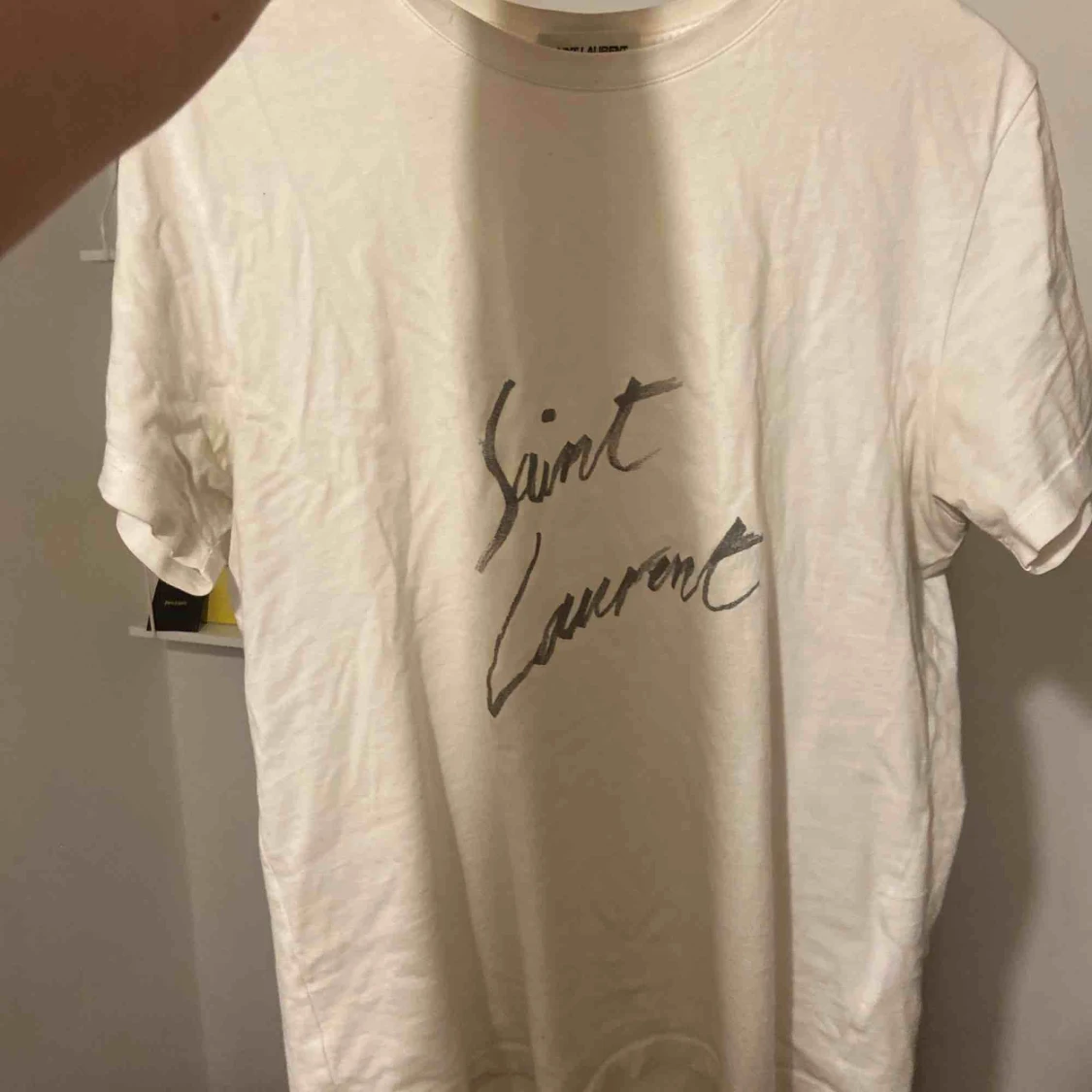 Enkel och tvärfet Saint Laurent Tee i L men sitter som en S-M. Köpt i somras på farfetch och är väl använd. Priset kan diskuteras 💫 inga synliga flaws