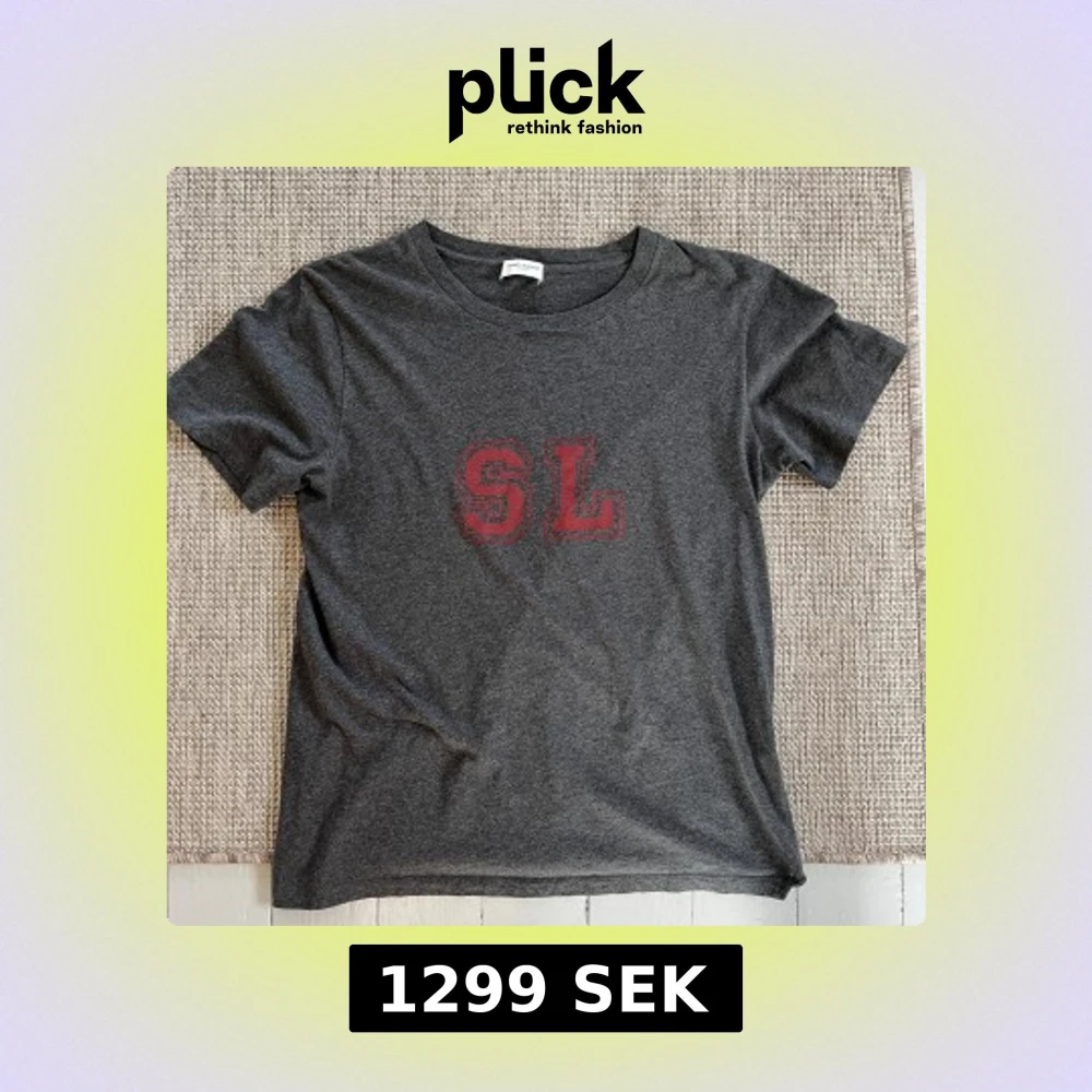 Grå T-shirt med röd logo från saint Laurent (Hedi era) Bra skick strl S. Hojta gärna till om fler bilder eller frågor 🙌