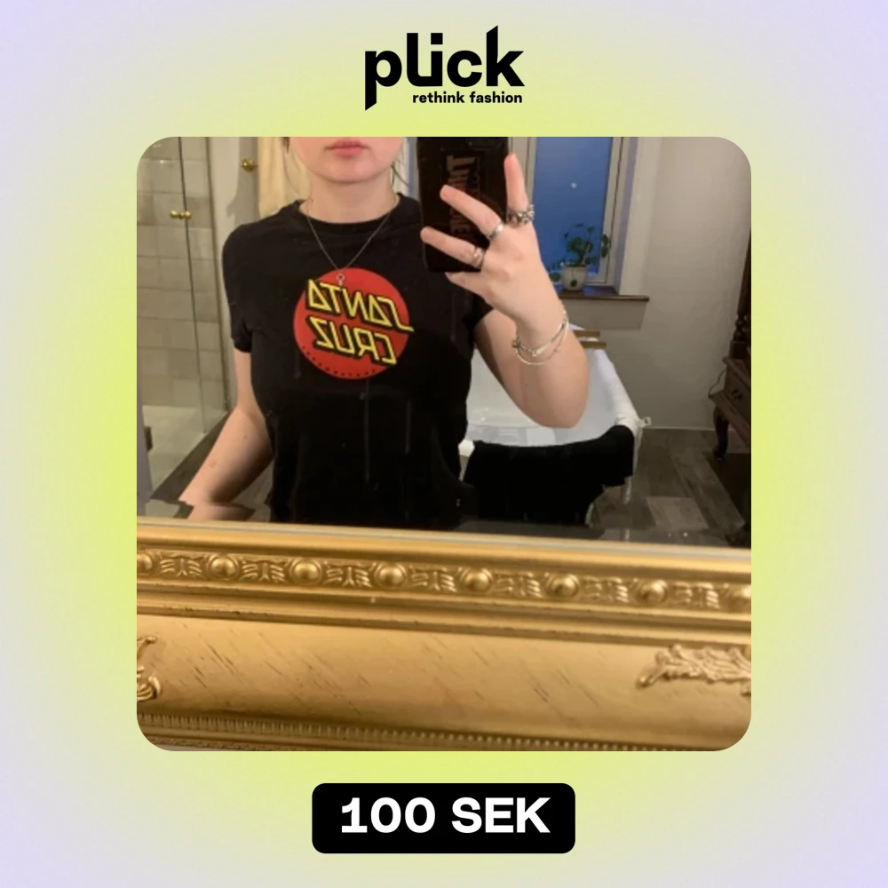 En jättesöt Santa Cruz T-shirt i barnstorleken 8-10 men passar som en xs/s. Jag har vanligtvis xs/s och är 158cm lång och den sitter perfekt på mig. Inga slitningar eller hål eller fläckar!🫶🏻