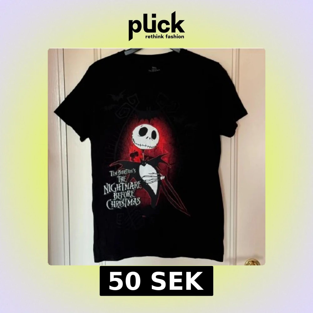 Säljer en svart T-shirt från Disney med motiv från Tim Burton's The Nightmare Before Christmas. T-shirten är kortärmad och tillverkad i 100% bomull. Säljer då den inte kommer till användning