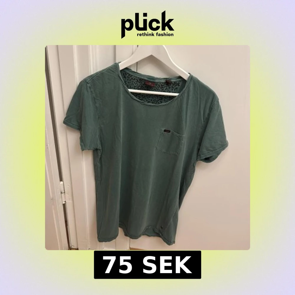 Snygg grön t-shirt från Scotch & Soda med rund halsringning och liten bröstficka. T-shirten har ett diskret mönster på insidan av halsen och är perfekt för en avslappnad stil. Storlek L.