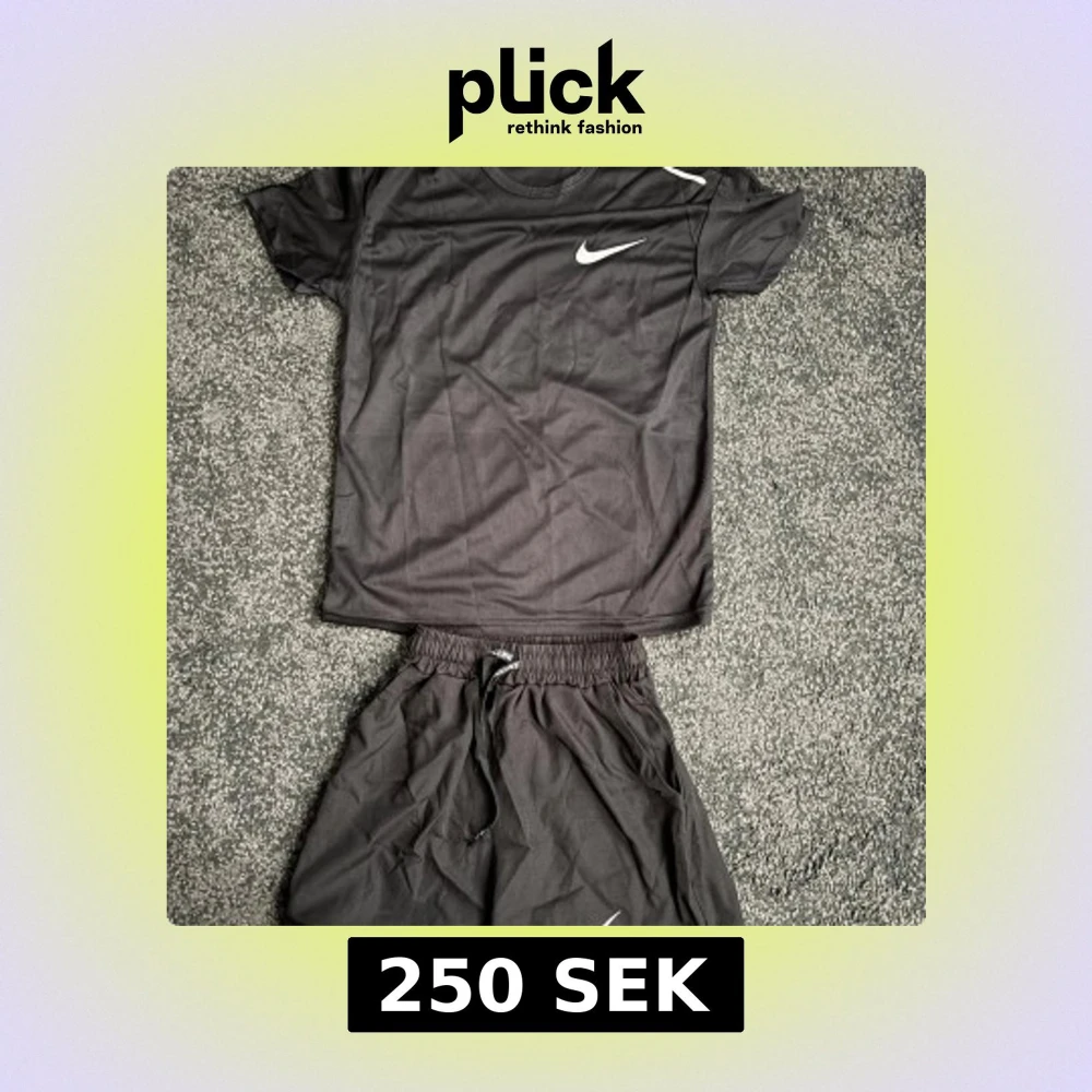 Nike Miller Svart t-shirt och shorts från Nike Miller i lätt och ventilerande funktionsmaterial. Klassisk rund halsringning, korta ärmar och vit Nike-logga på bröstet. Perfekt för träning och sportiga dagar. Är ganska tajt.