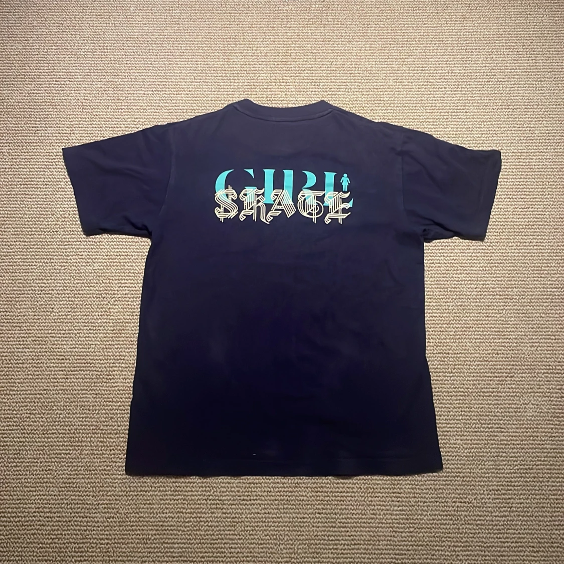 Säljer en mörkblå t-shirt som är från uniqlo x girl skateboards. T-shirten har en liten bröstficka med ett tryck och är i mjuk bomull. Kontakta gärna vid frågor!