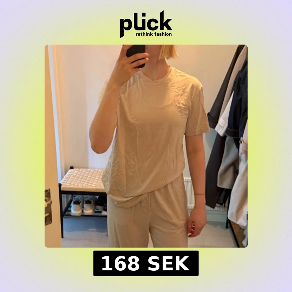 Säljer en beige t-shirt från SKIMS i mjuk och stretchig modal- och bomullsblandning. T-shirten har klassisk passform, rund halsringning och korta ärmar. Perfekt basic-plagg. Superbekväm.