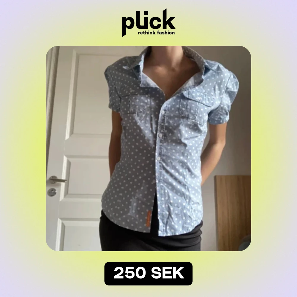 Jättefin ljusblå kortärmad skjorta med vita prickar och knappar längst fram så man kan knäppa upp precis hur man vill. Nyttskick🤍🩵