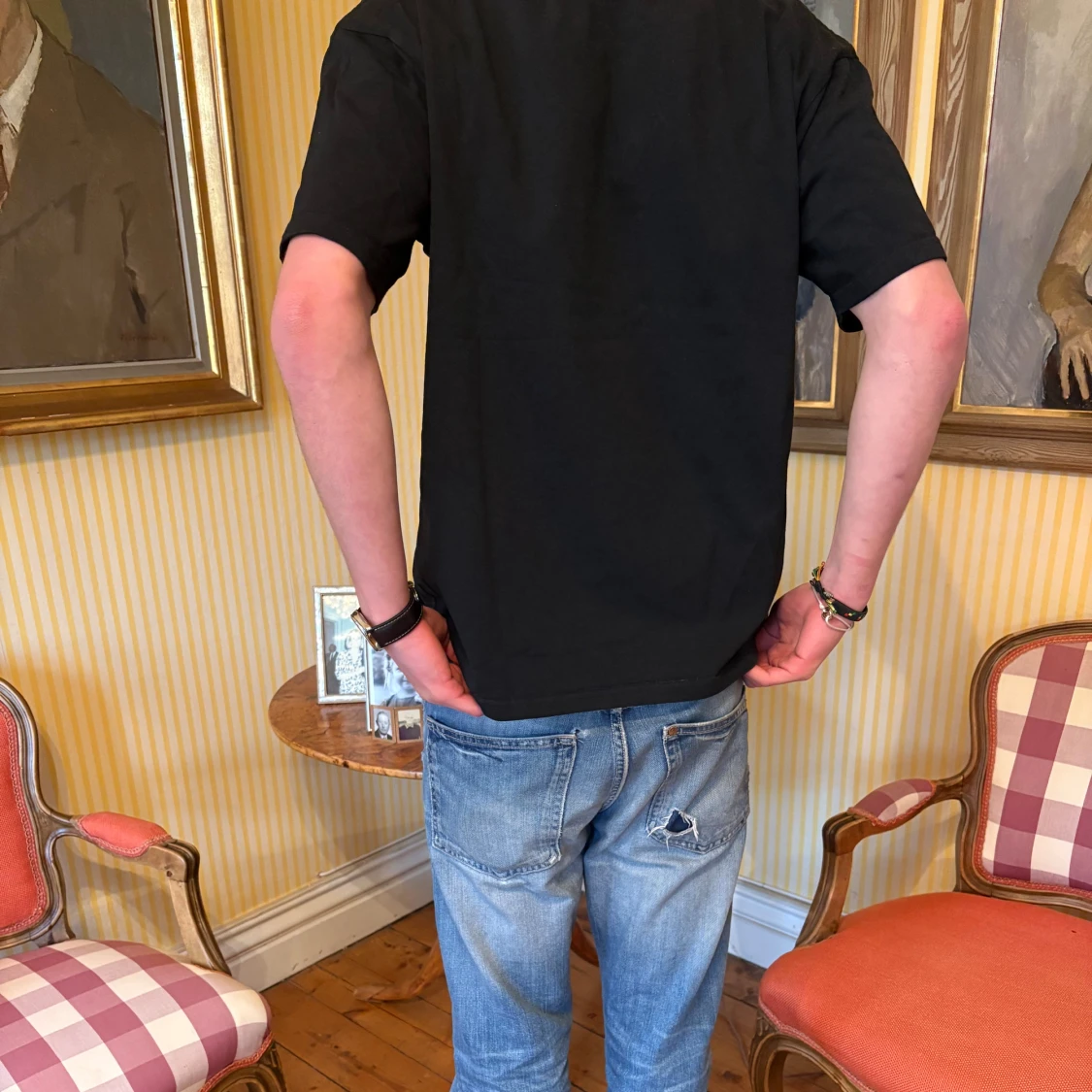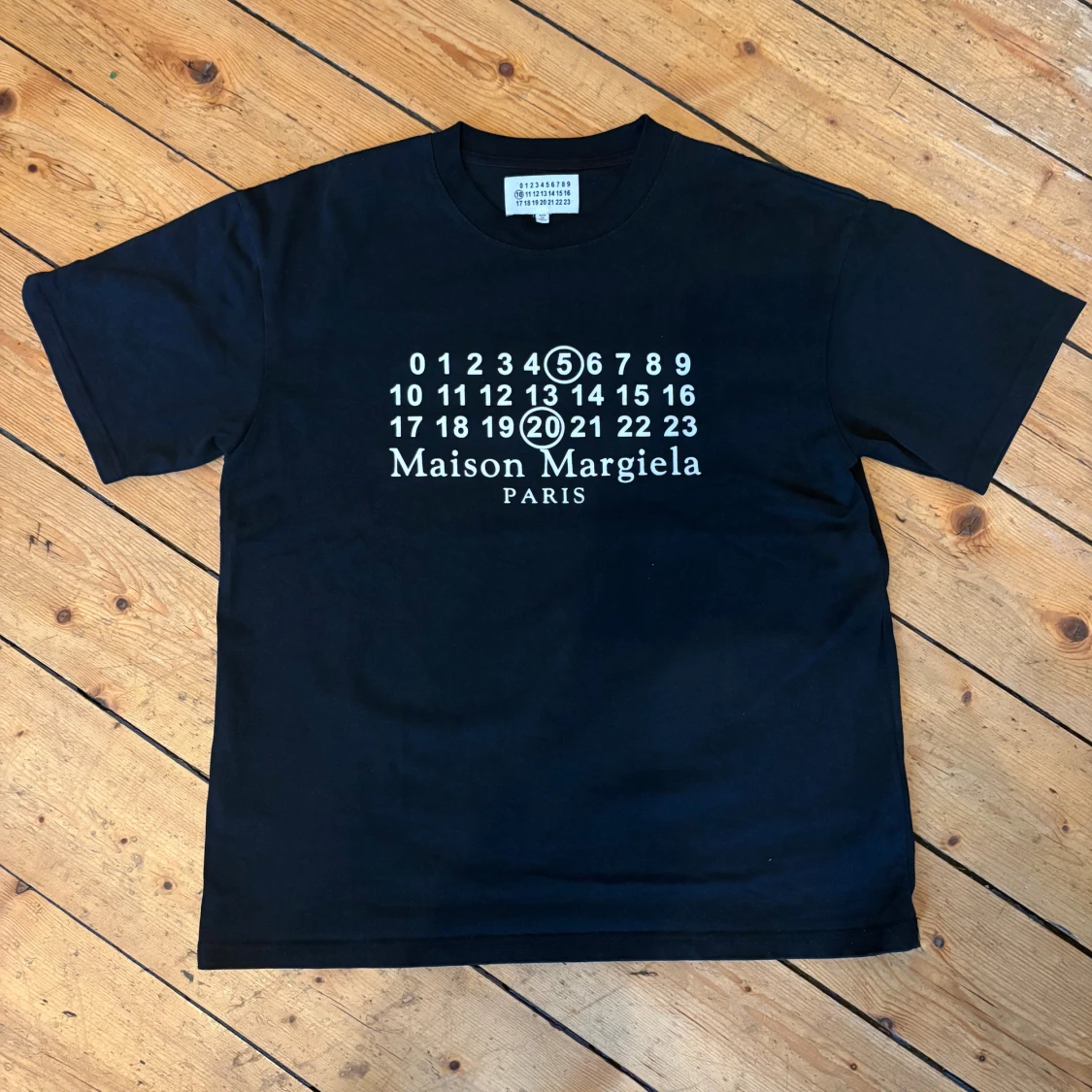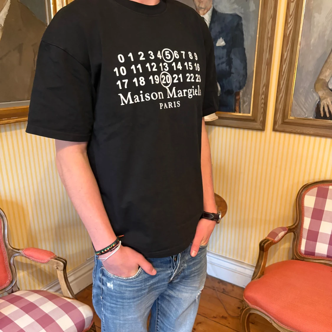 Svart t-shirt från Maison Margiela, storlek S men passar M, modellen på bilden är 180cm. Hör av er vid frågor och funderingar👊, ej byte.