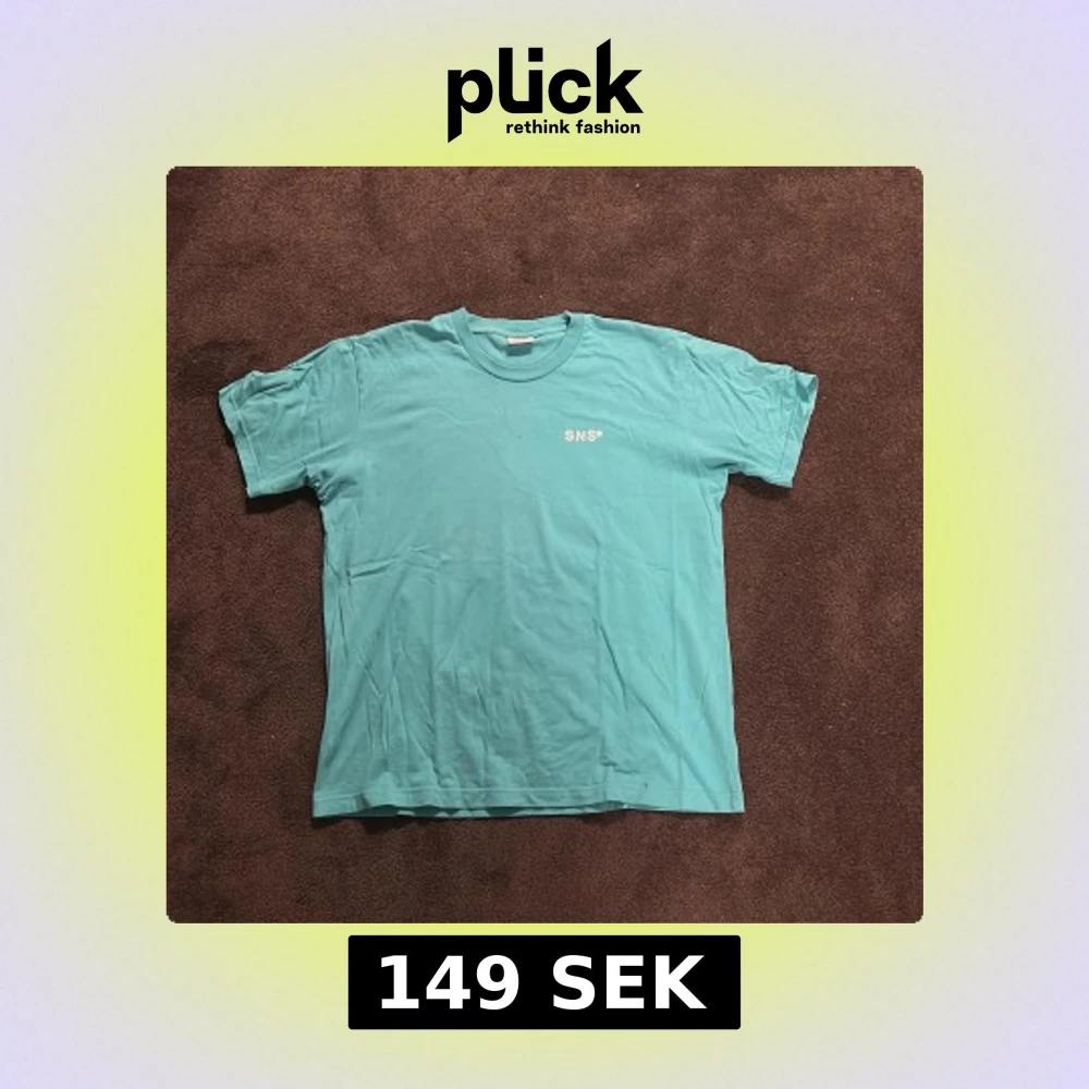 Säljer en turkos t-shirt från SNS med tryck på både fram- och baksidan. Storlek M sitter TTS. Unik färg från gammal kollektion använd max 5 ggr.