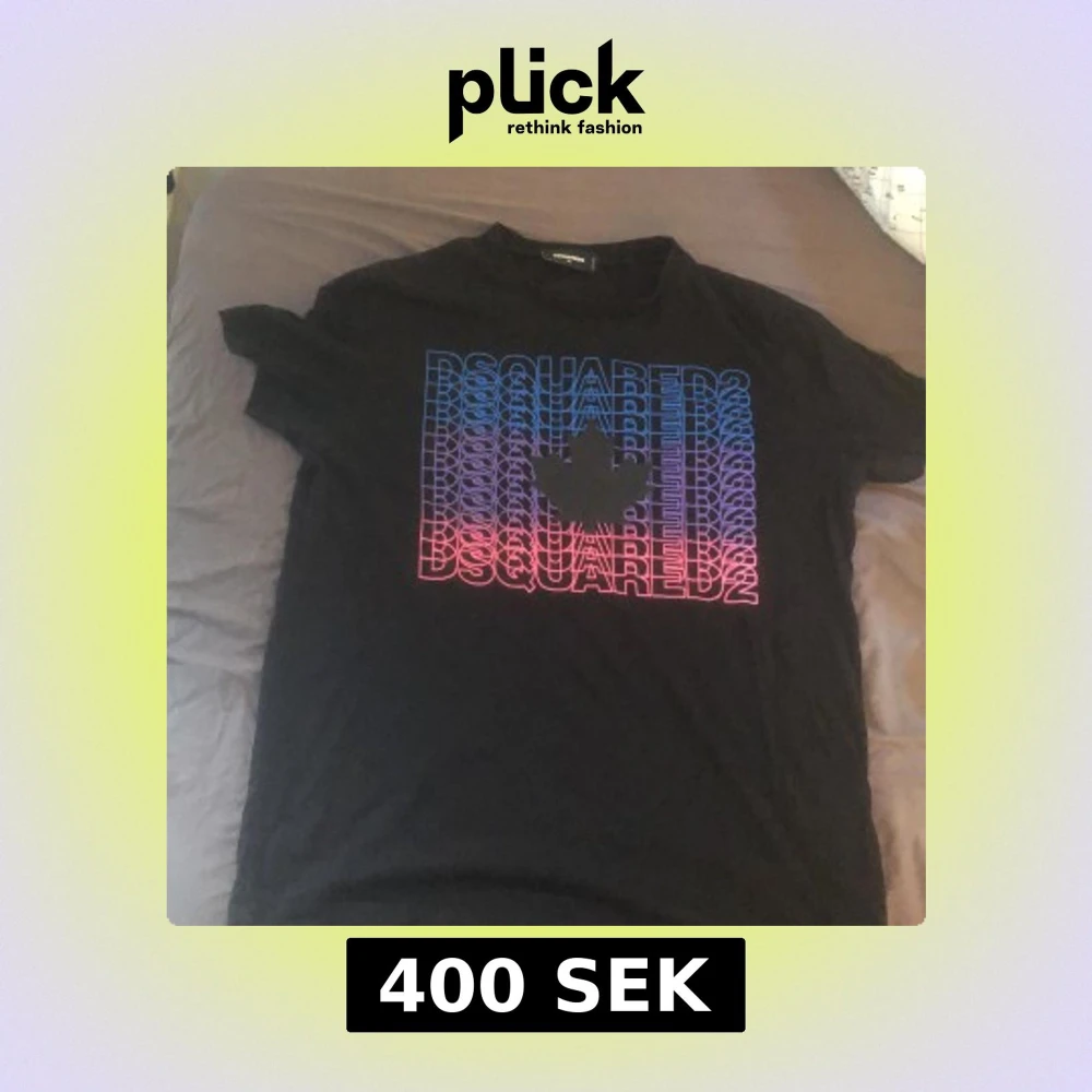 Svart t-shirt från DSQUARED2 i storlek XL med färgstark print framtill i blått, lila och rosa med DSQUARED2-logga och lönnlöv. Klassisk passform och rund hals. Perfekt för dig som gillar streetstyle och vill sticka ut med en snygg logga.