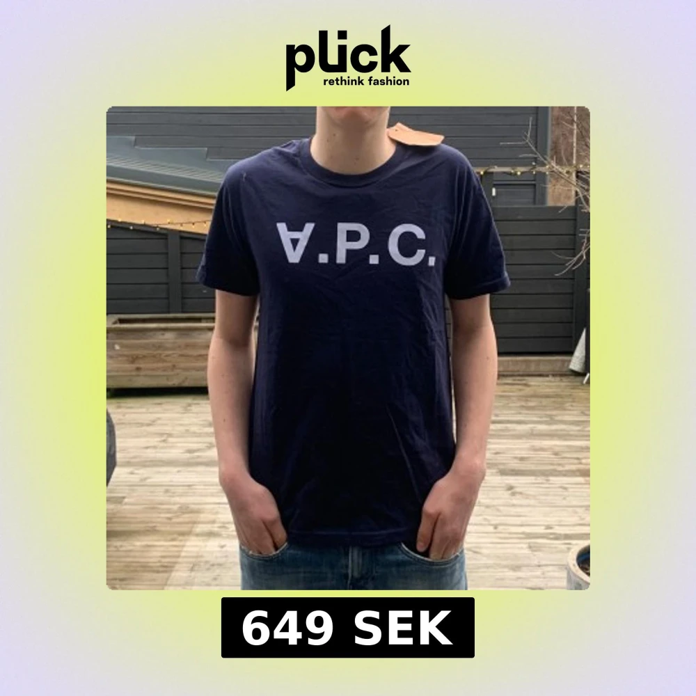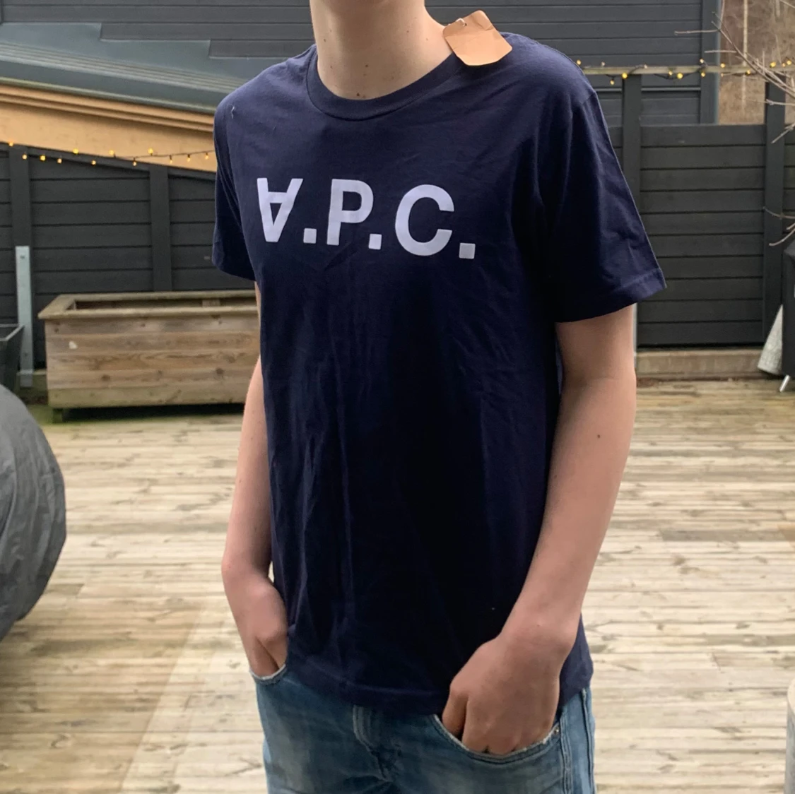 Säljer en helt ny mörkblå t-shirt från A.P.C. med vit logga på framsidan. Nypris:1300, Mitt pris:649. Perfekt till våren☀️🟦🙌Hör av er vid frågor, skickar inom 24H📬📦