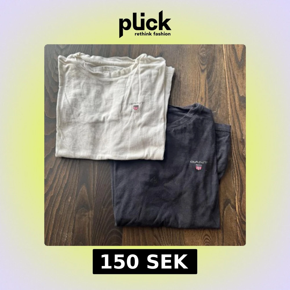 Säljer två klassiska t-shirts från GANT, en svart och en vit. Säljer tillsammans som ett paket men man kan även köpa separat om man vill det. Skriv till mig om ni har några frågor!